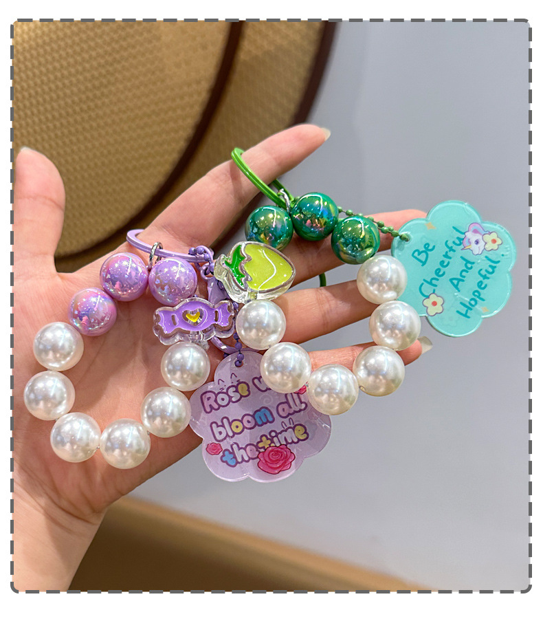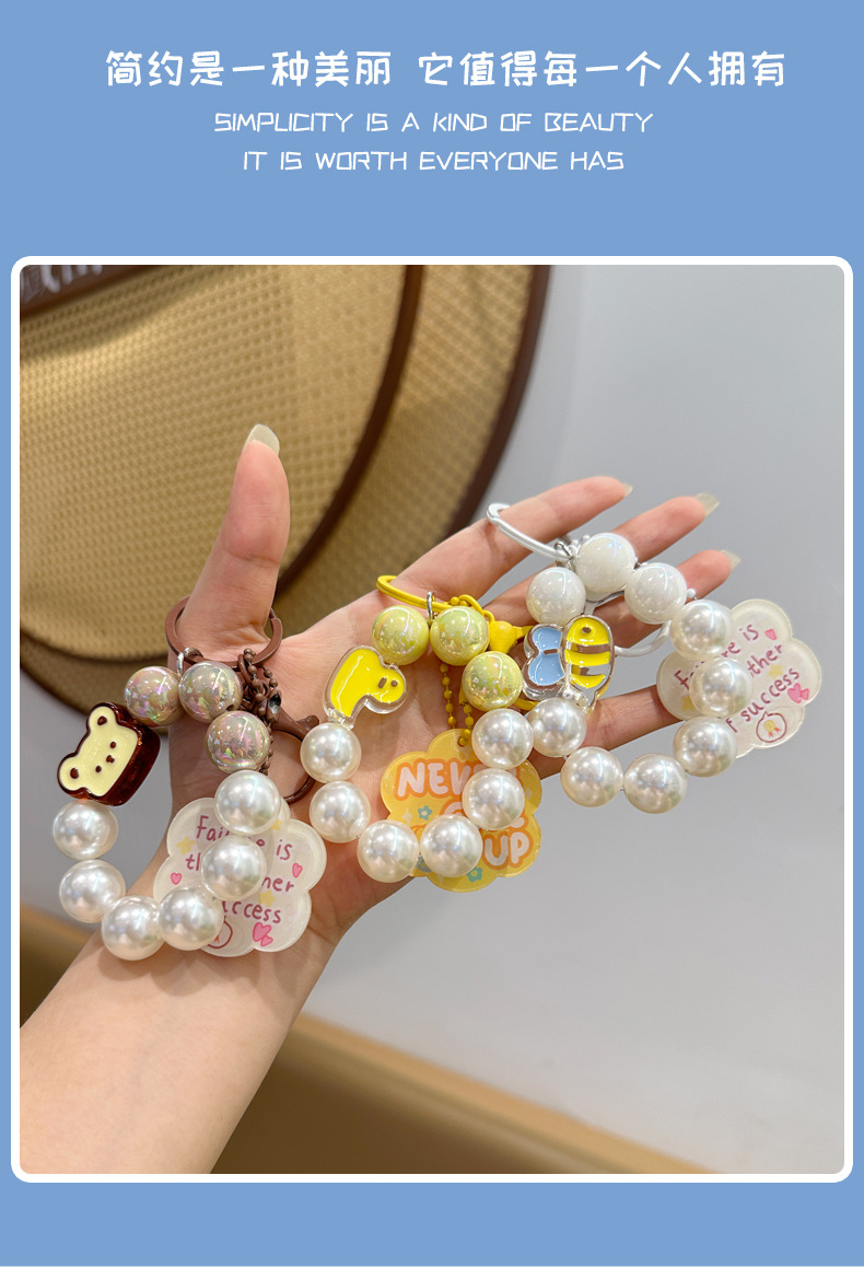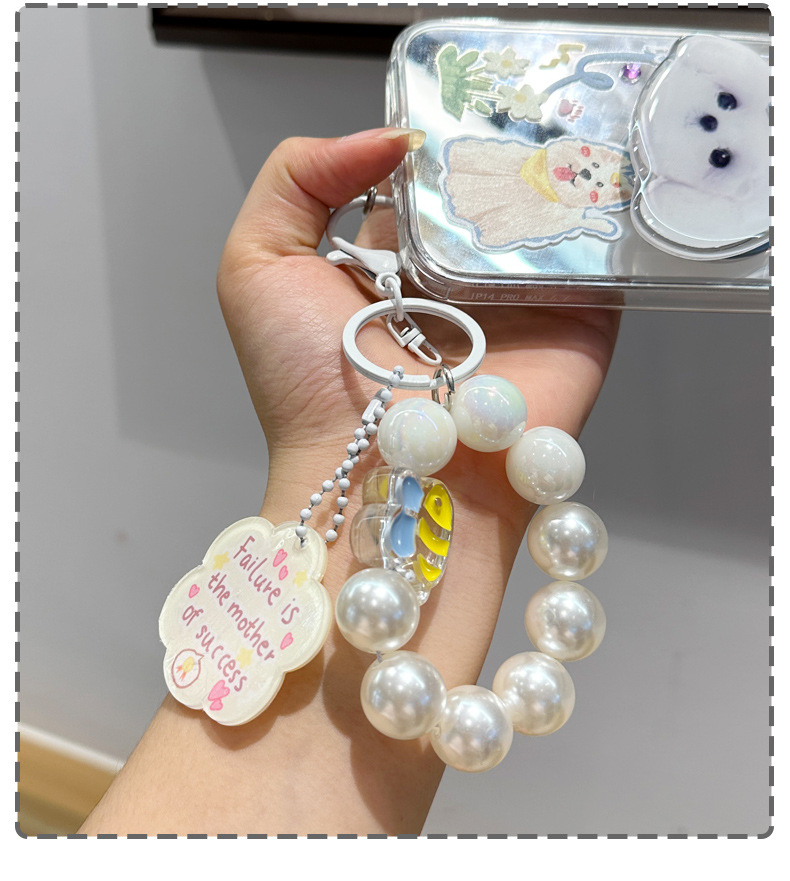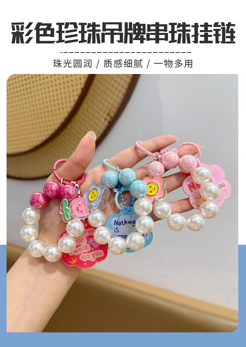 창조적 인 진주 색 구슬 휴대 전화 체인 키 체인 매달려 커플 태그 백 펜던트 헤드폰 가방 액세서리
