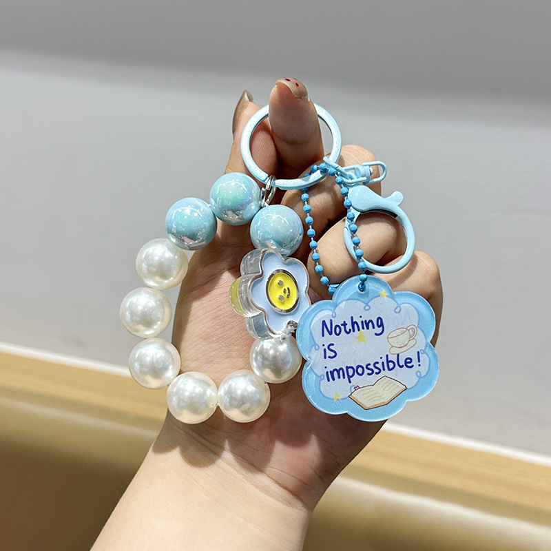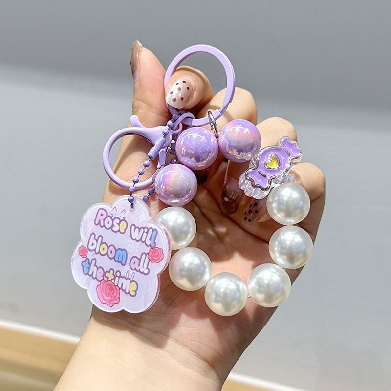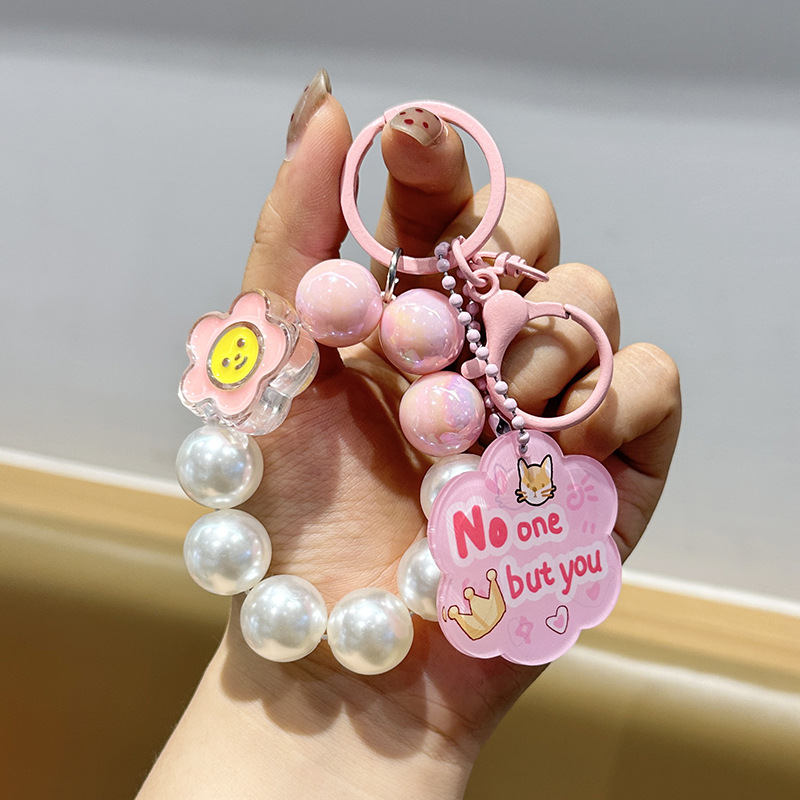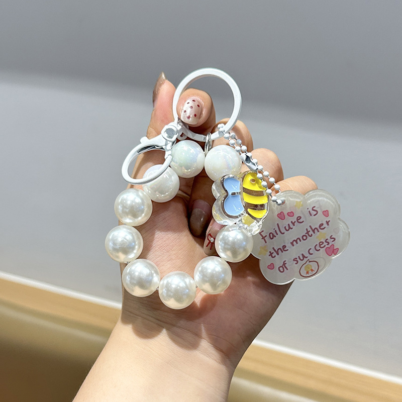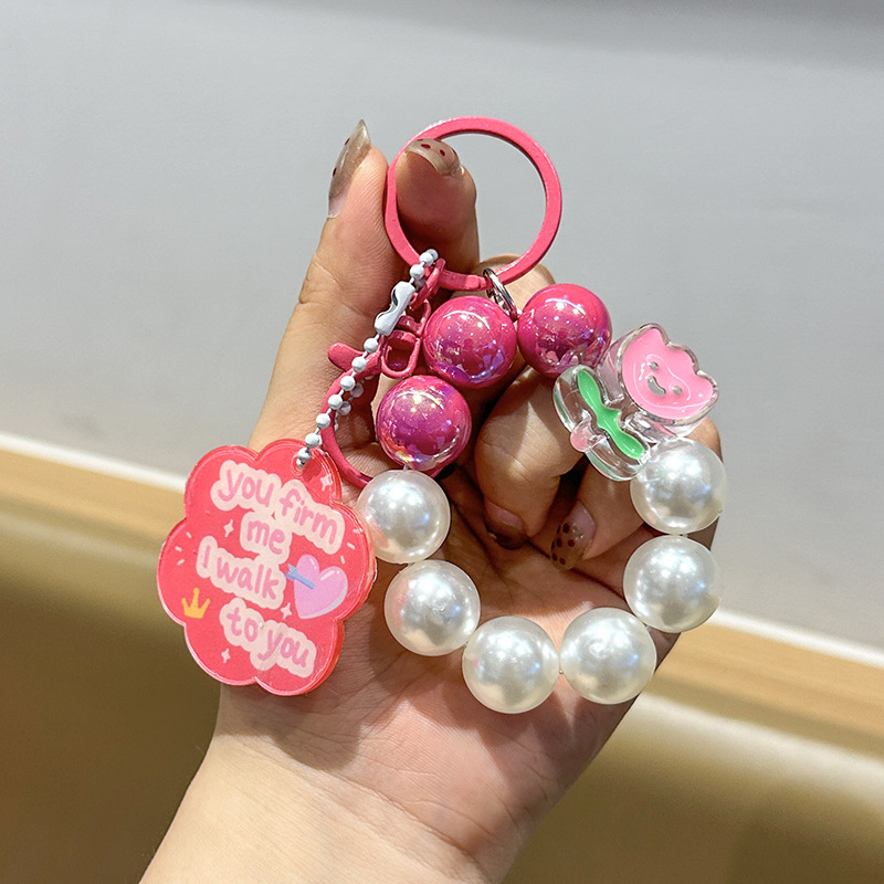 창조적 인 진주 색 구슬 휴대 전화 체인 키 체인 매달려 커플 태그 백 펜던트 헤드폰 가방 액세서리