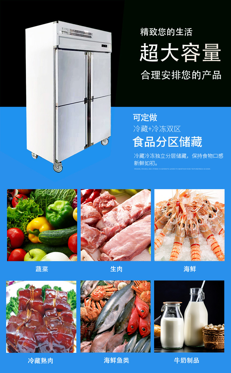 상업용 직접 냉각 냉동고 4 도어 신선 유지 캐비닛 주방 이중 온도 냉동고 대용량 냉동고 식품 수직 냉장고