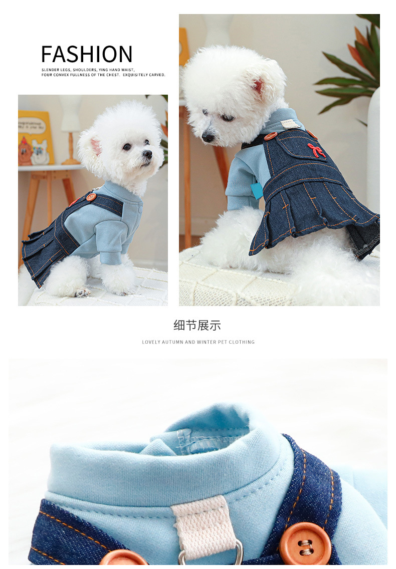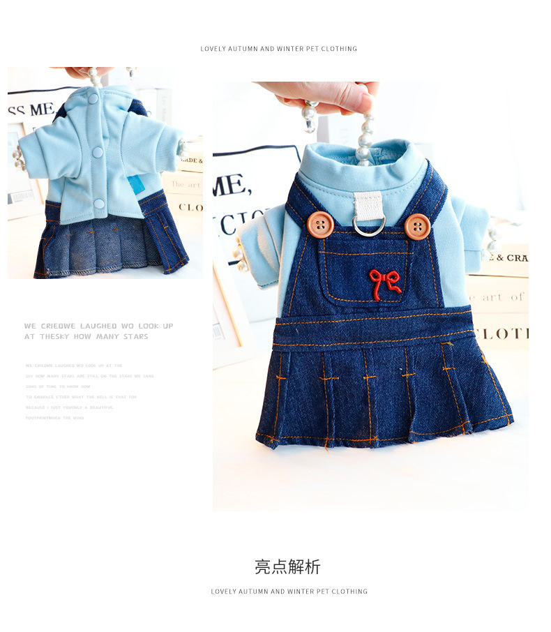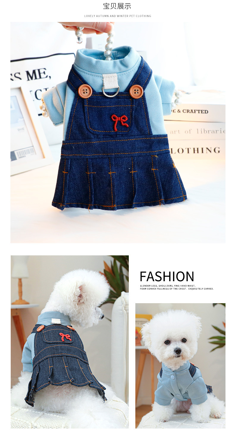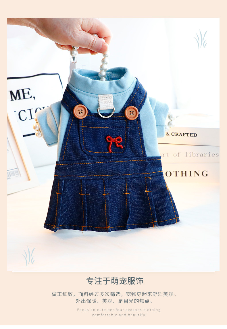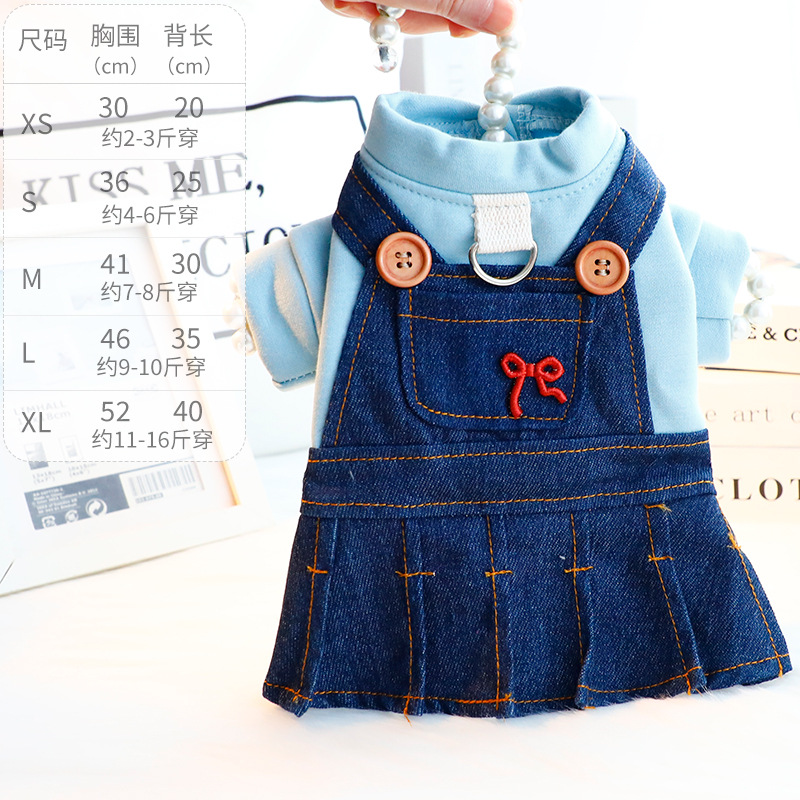 개 옷 봄과 가을 고양이 공주 달콤한 소녀 데님 스트랩 스커트 견인 작은 개 테디 애완 동물 6236스토어 가기
