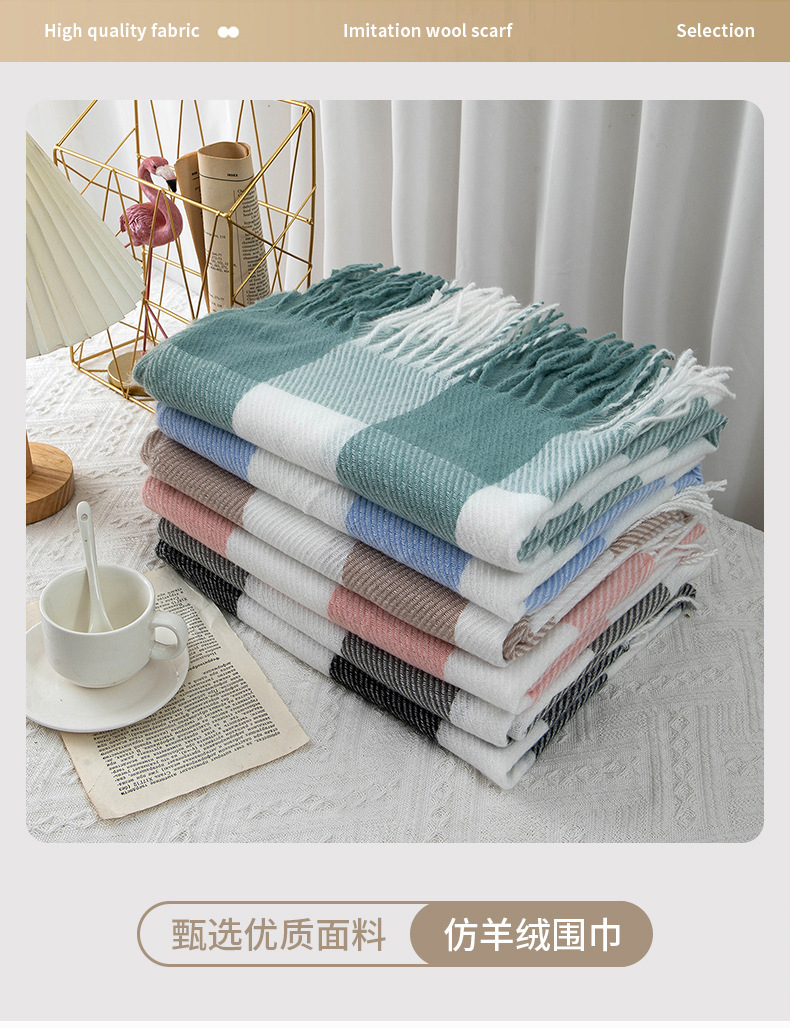 한국 동대문 새 격자 무늬 스카프 여성 겨울 캐시미어 따뜻한 목도리 커플 작은 격자 무늬 스카프 도매