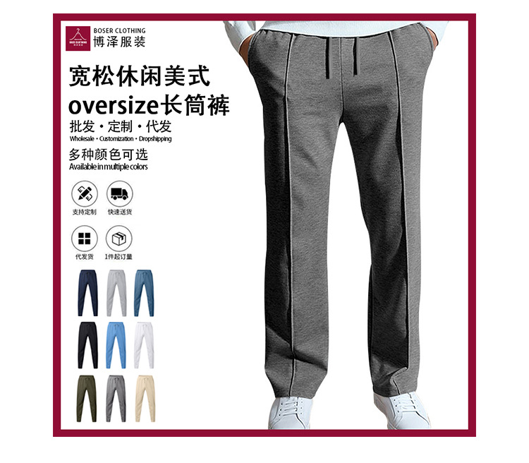 2025 새로운 크로스 보더 바지 남성 봄, 여름 느슨한 스트레이트 스포츠 캐주얼 바지 미국 특대 긴 바지스토어 가기