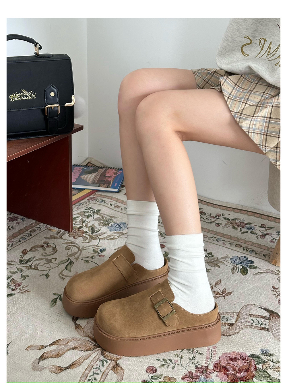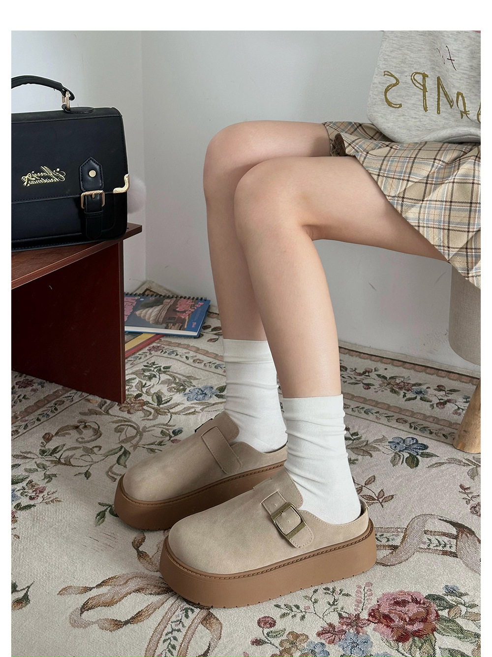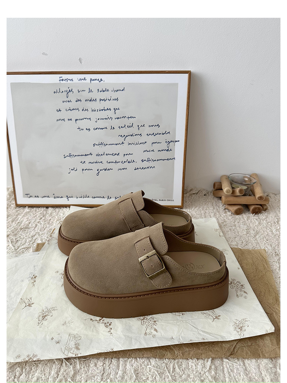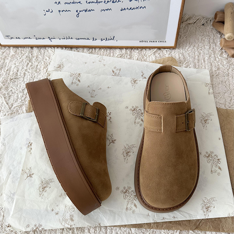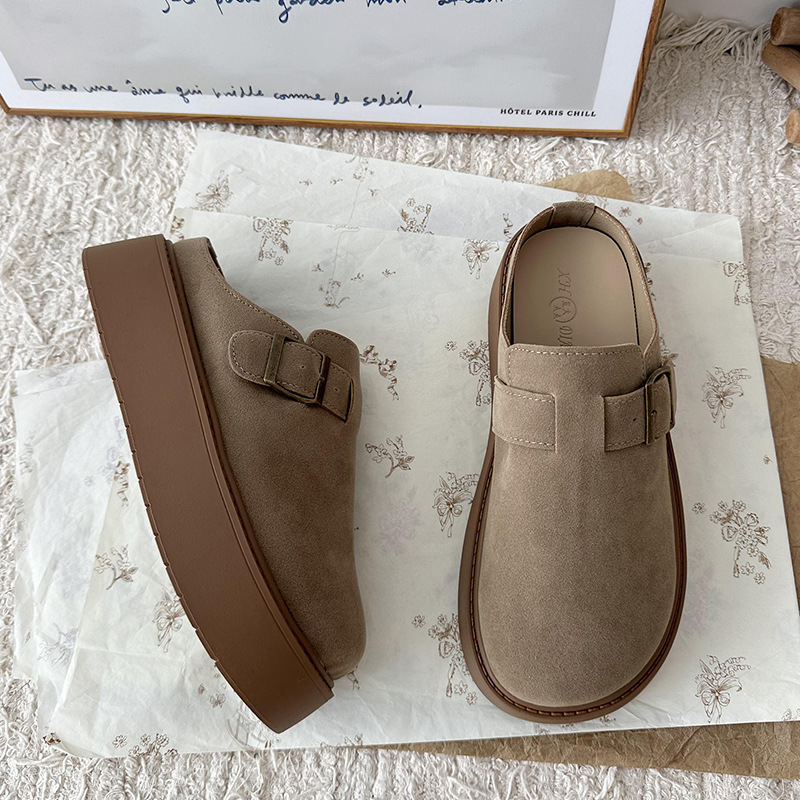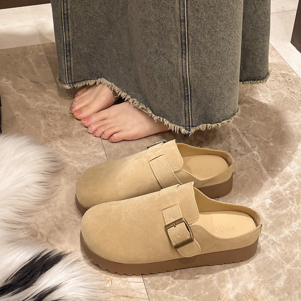 프랑스 패션 두꺼운 바닥 게으른 슬리퍼 여성의 2024 가을 새로운 복고풍 두꺼운 밑바닥 미끄럼 방지 외부 착용 반 슬리퍼