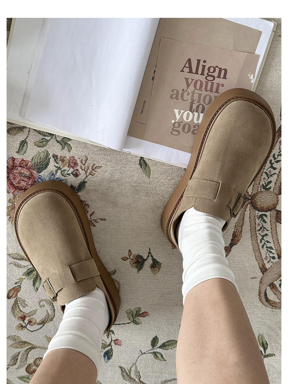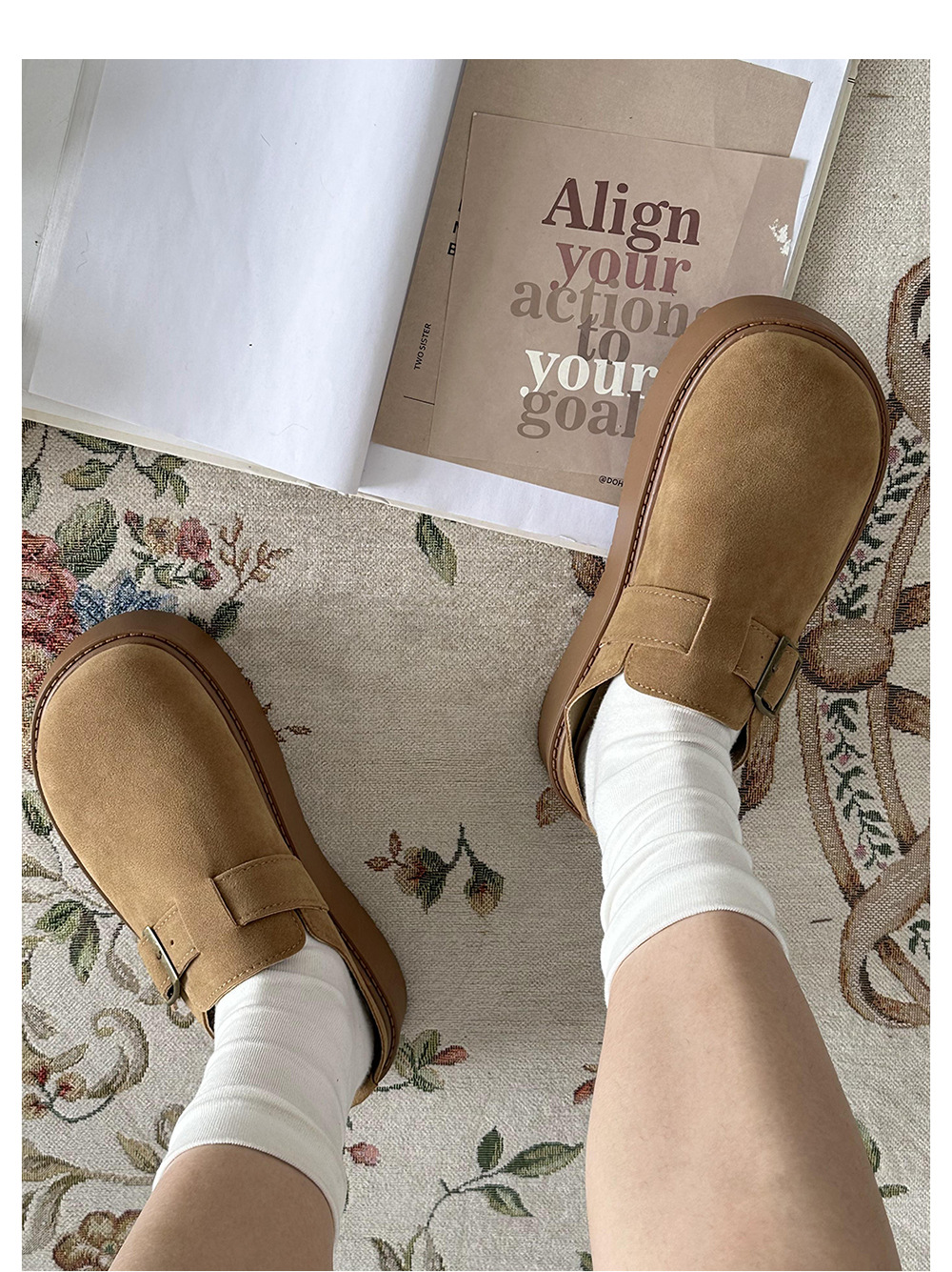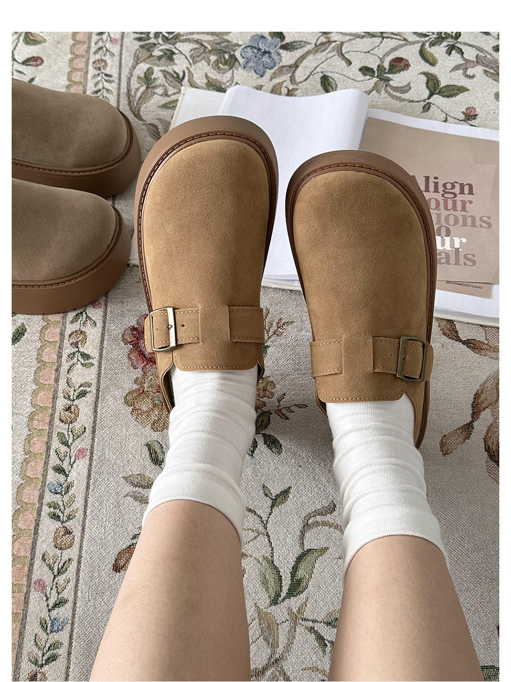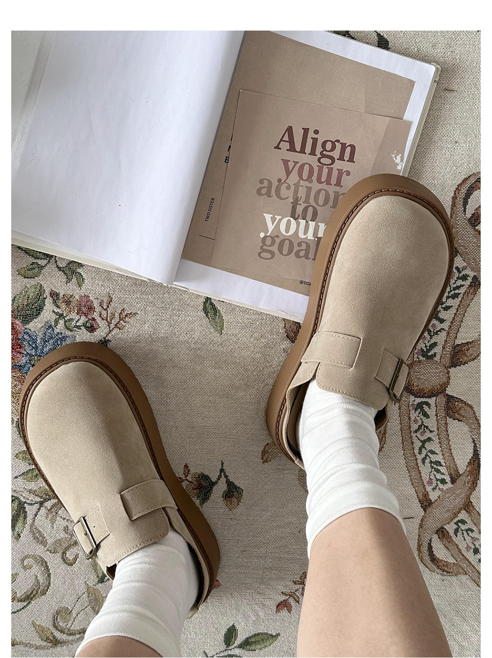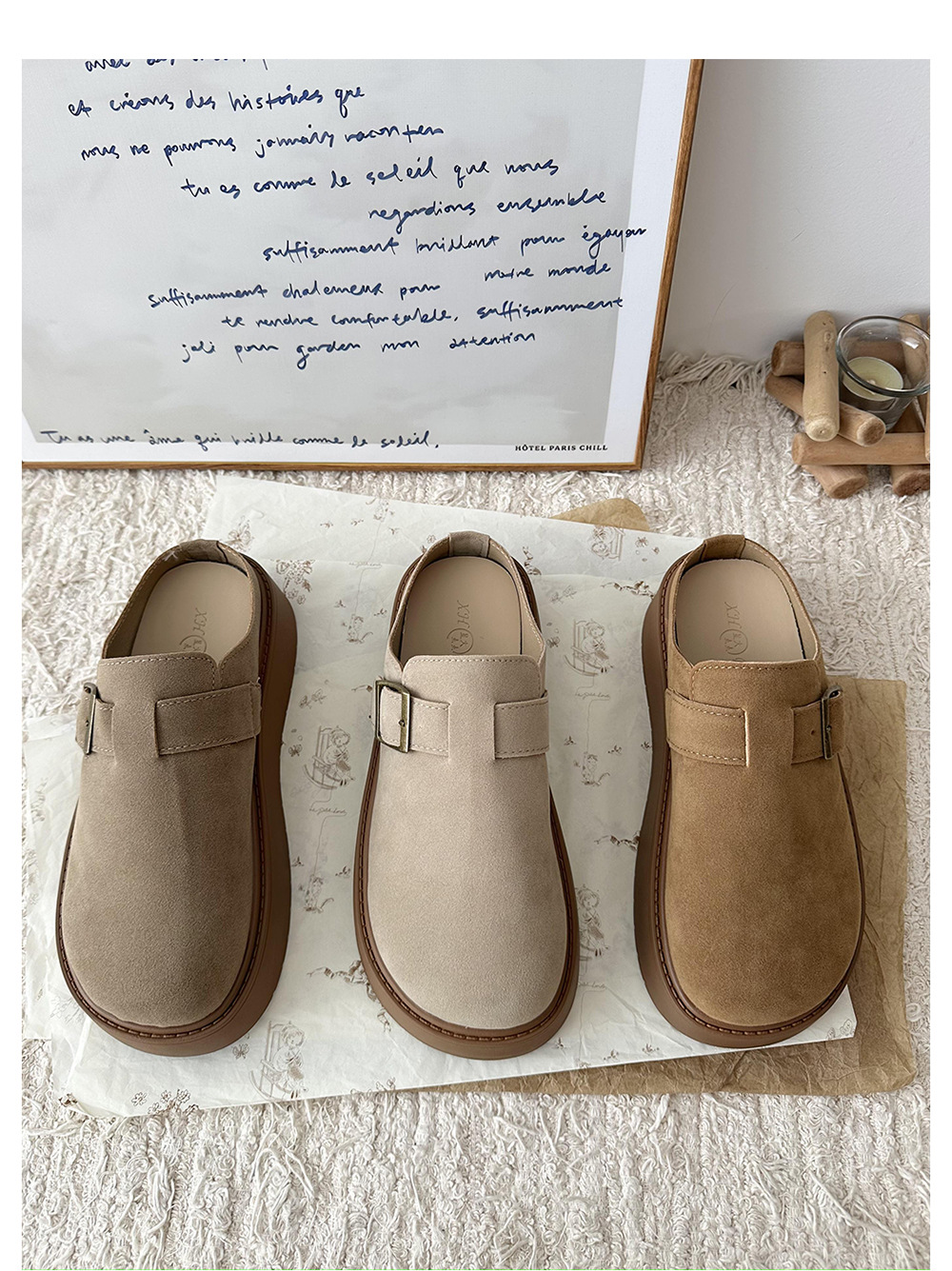 프랑스 패션 두꺼운 바닥 게으른 슬리퍼 여성의 2024 가을 새로운 복고풍 두꺼운 밑바닥 미끄럼 방지 외부 착용 반 슬리퍼
