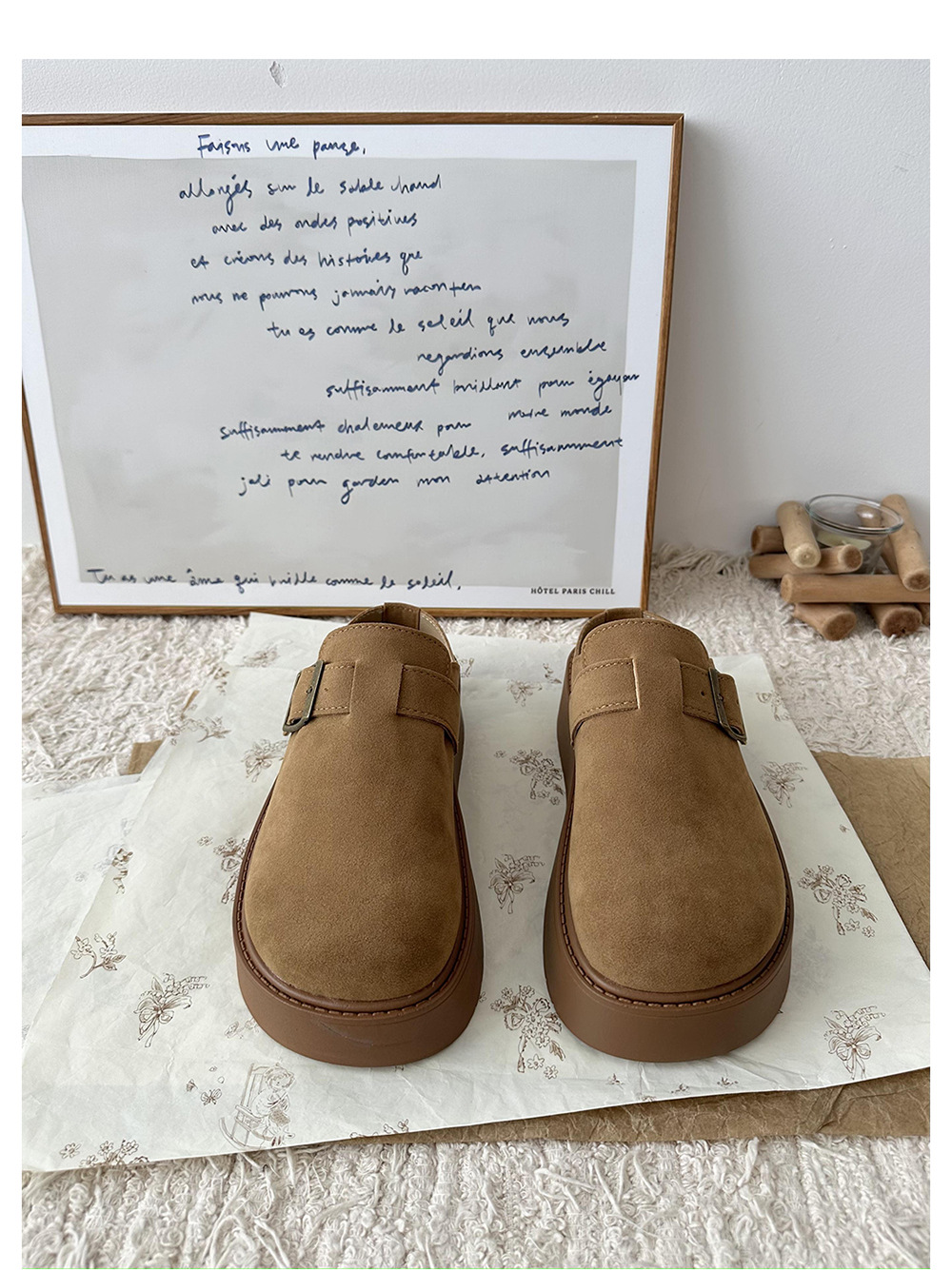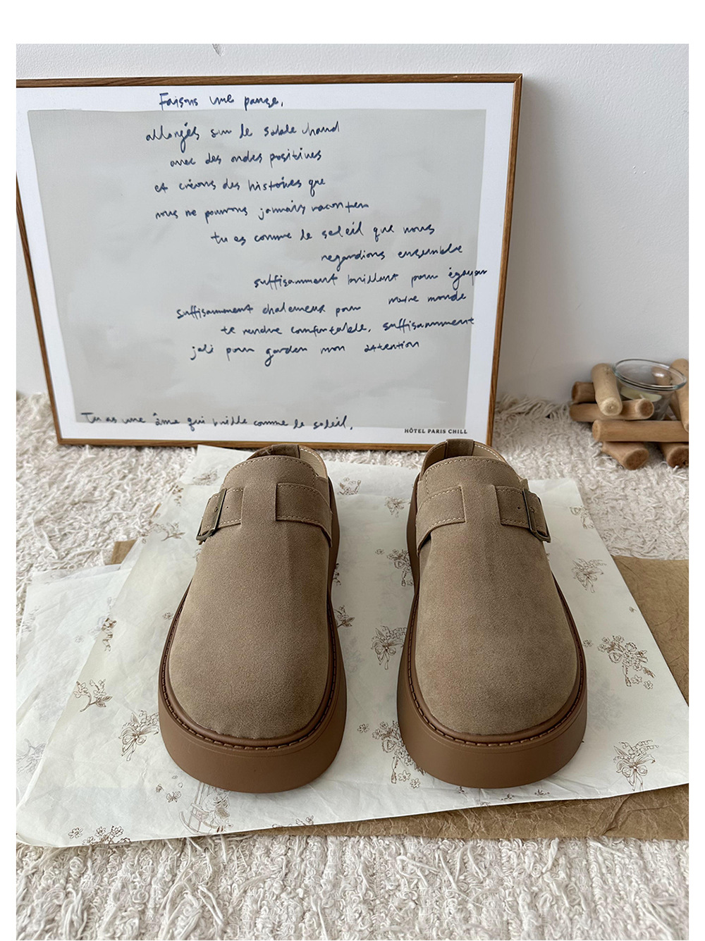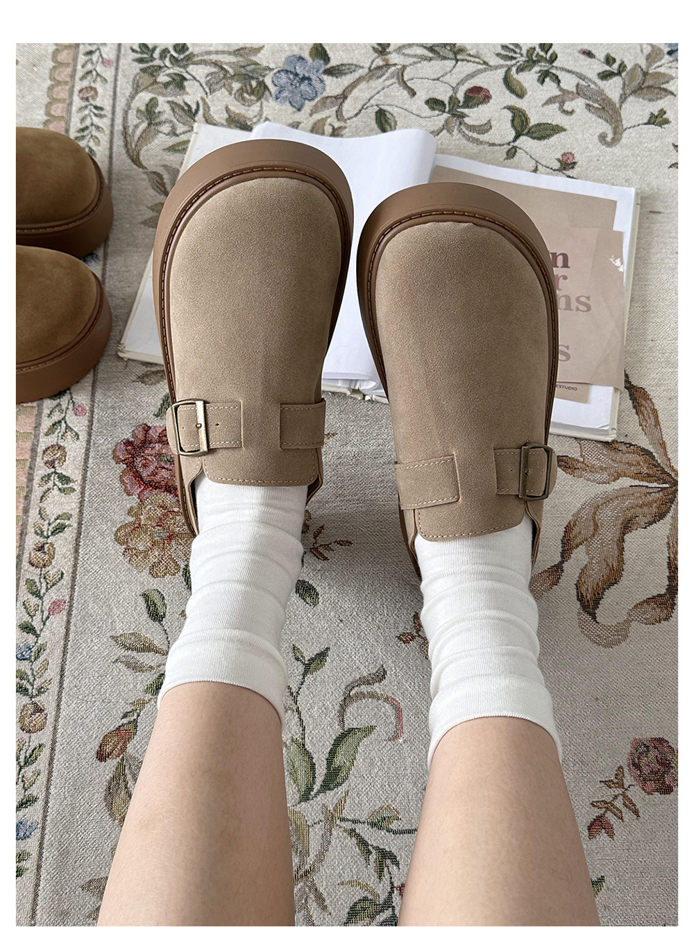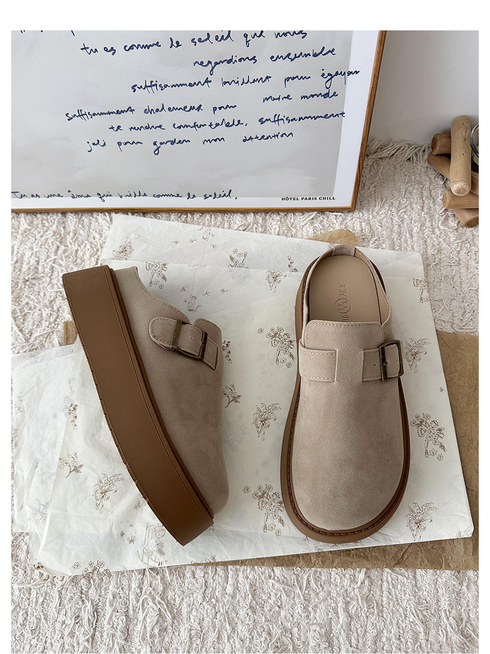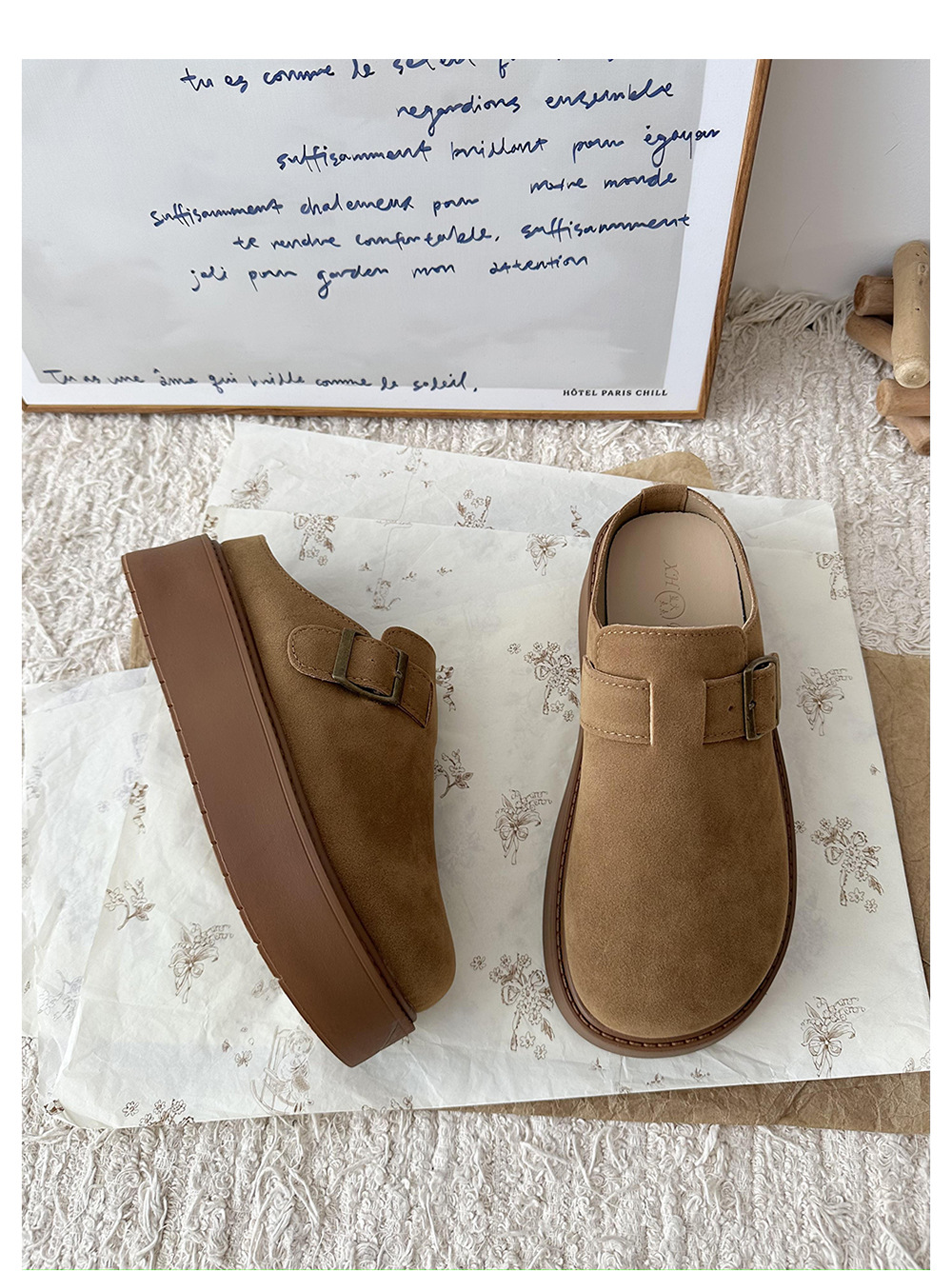 프랑스 패션 두꺼운 바닥 게으른 슬리퍼 여성의 2024 가을 새로운 복고풍 두꺼운 밑바닥 미끄럼 방지 외부 착용 반 슬리퍼
