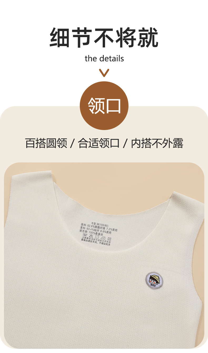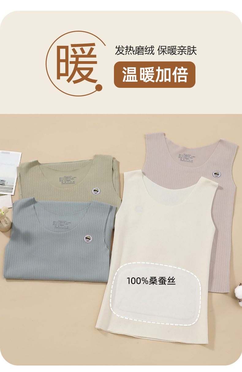 어린이 및 초등학생 벨벳 따뜻한 조끼 실크 패치 배꼽 보호 편안한 양면 샌딩 가을 및 겨울베이스 셔츠