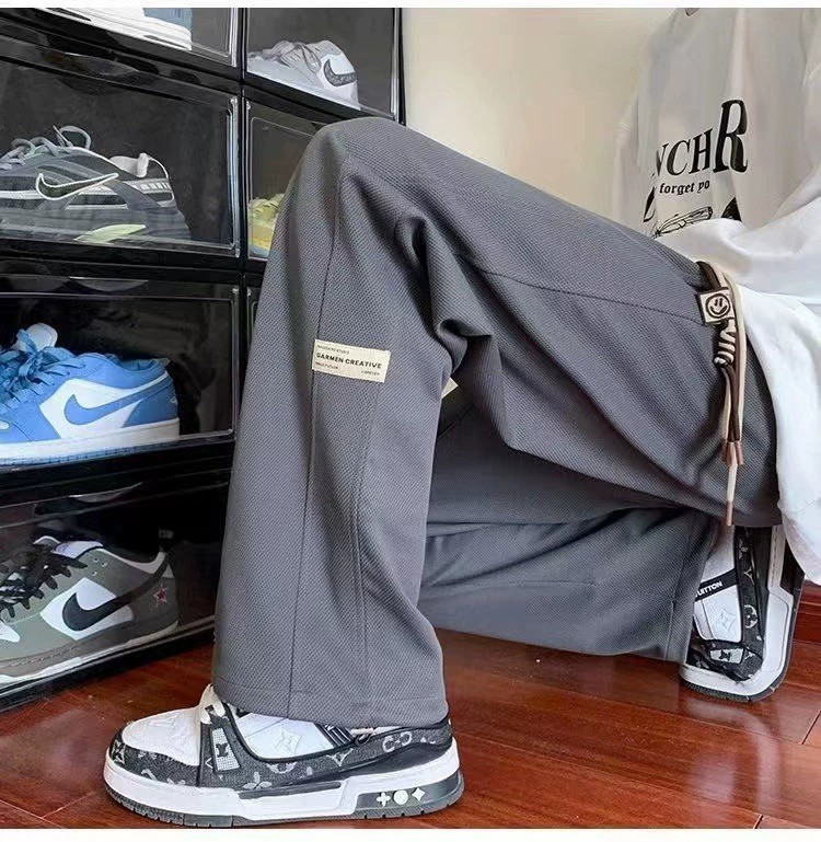 교수형 바지 남자의 봄과 여름 얇은 유행 브랜드 바지 플러스 사이즈 느슨한 직선 다리 넓은 다리 스포츠 캐주얼 바지스토어 가기