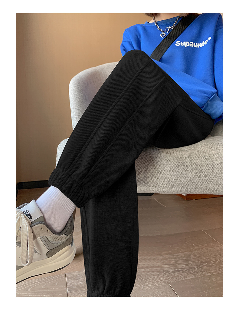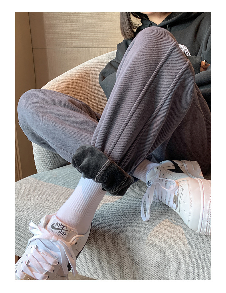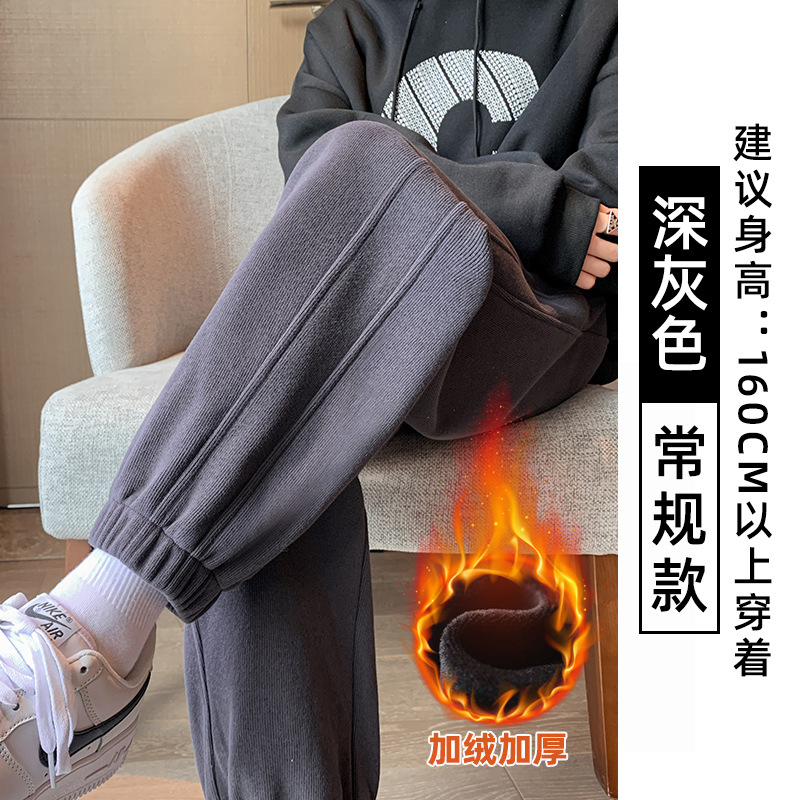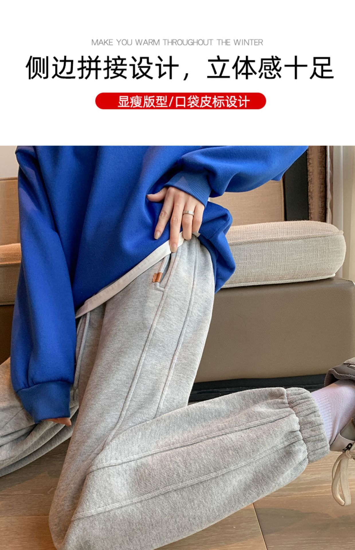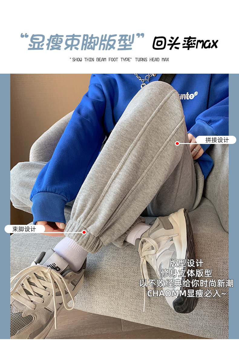 폭발 회색 스포츠 바지 가을과 겨울 2024 새로운 느슨한 발가락 기모 바지 작은 캐주얼 바지 조수스토어 가기