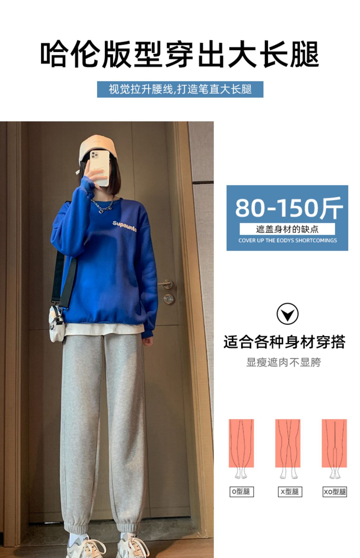 폭발 회색 스포츠 바지 가을과 겨울 2024 새로운 느슨한 발가락 기모 바지 작은 캐주얼 바지 조수