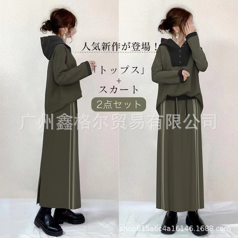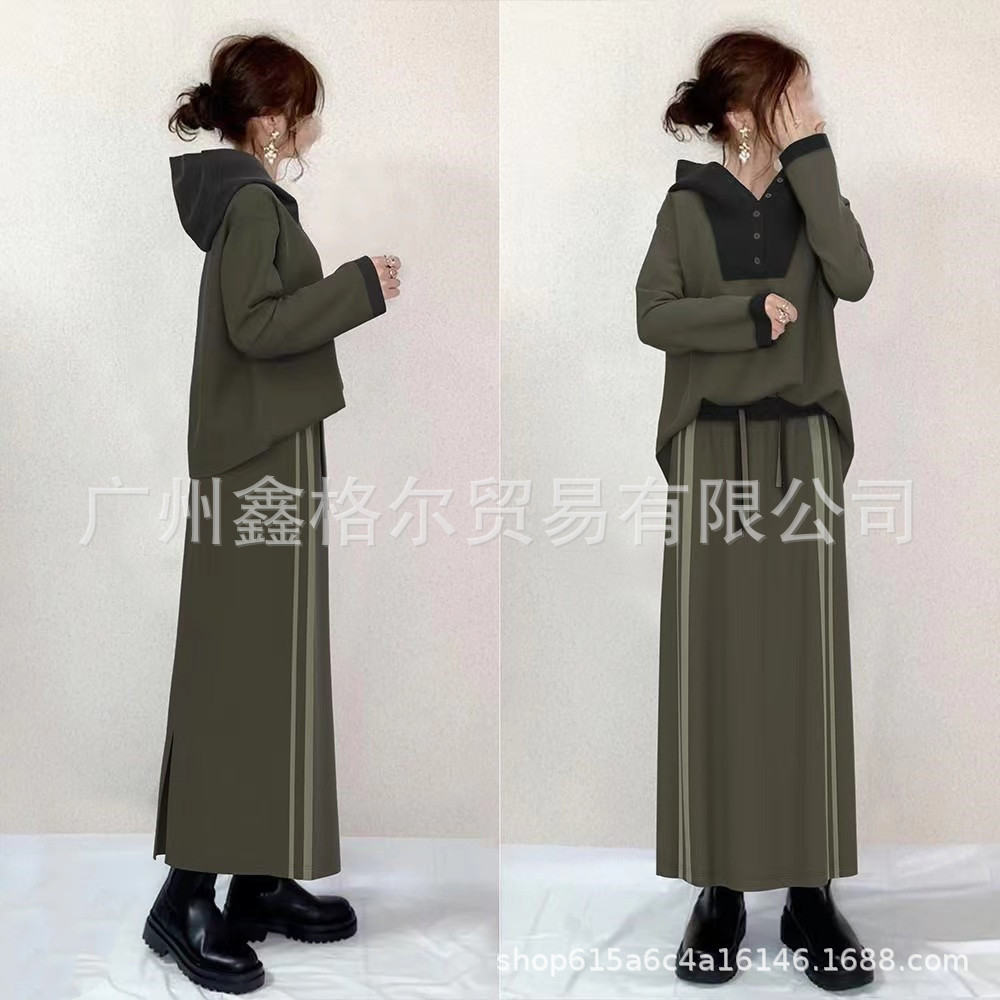 2025년 봄/가을 여성용 후드티+컬러블록 스커트 투피스 세트 (재고 있음)스토어 가기