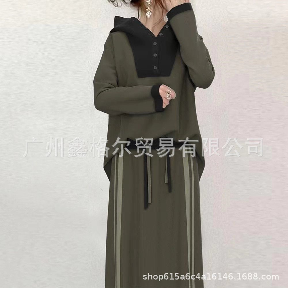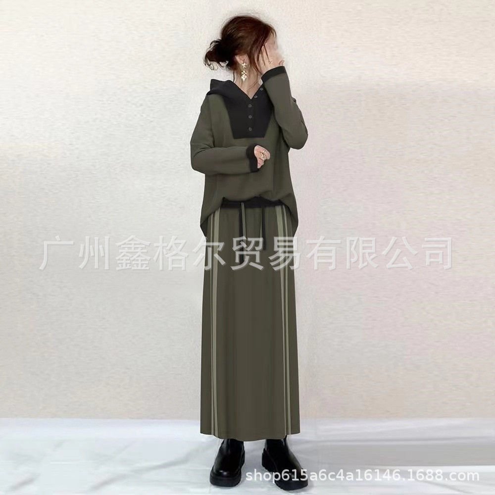 2025년 봄/가을 여성용 후드티+컬러블록 스커트 투피스 세트 (재고 있음)