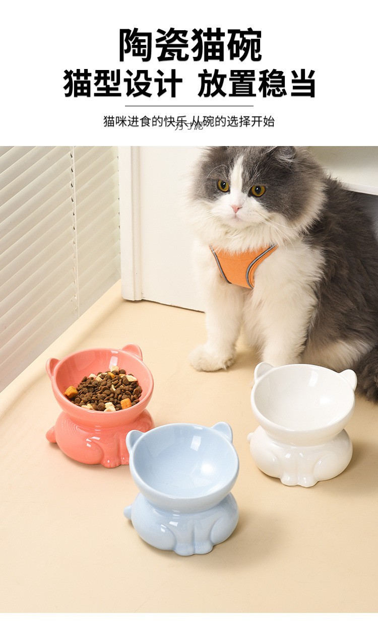 고양이 그릇 세라믹 스낵 그릇 귀여운 고가의 고양이 애완 동물 그릇 밥 그릇 마시는 그릇 목 세라믹 그릇 큰 직경스토어 가기