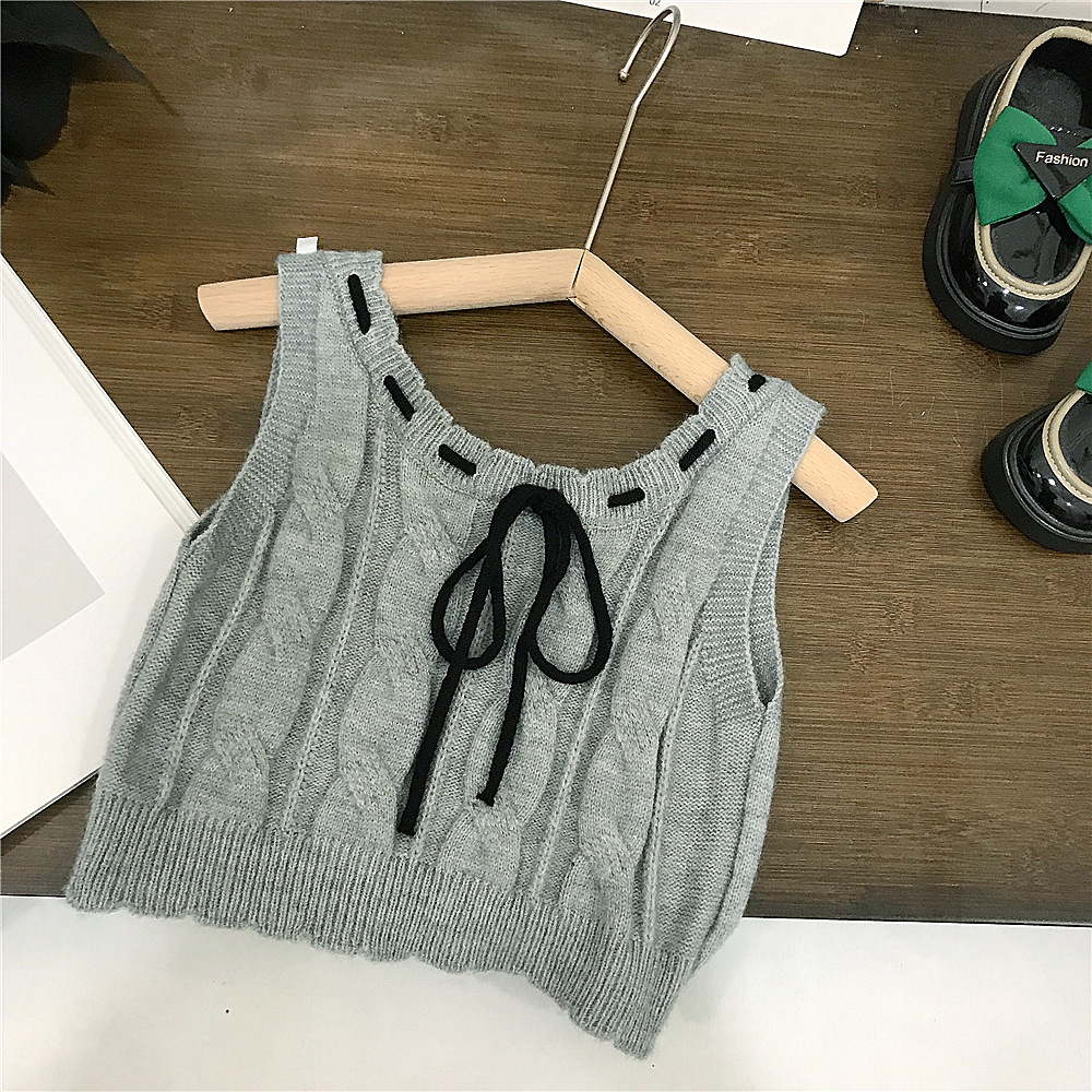 • 그레이 블랙 벨트 울 조끼