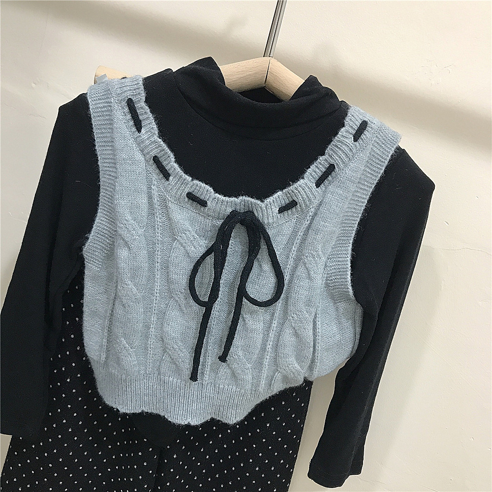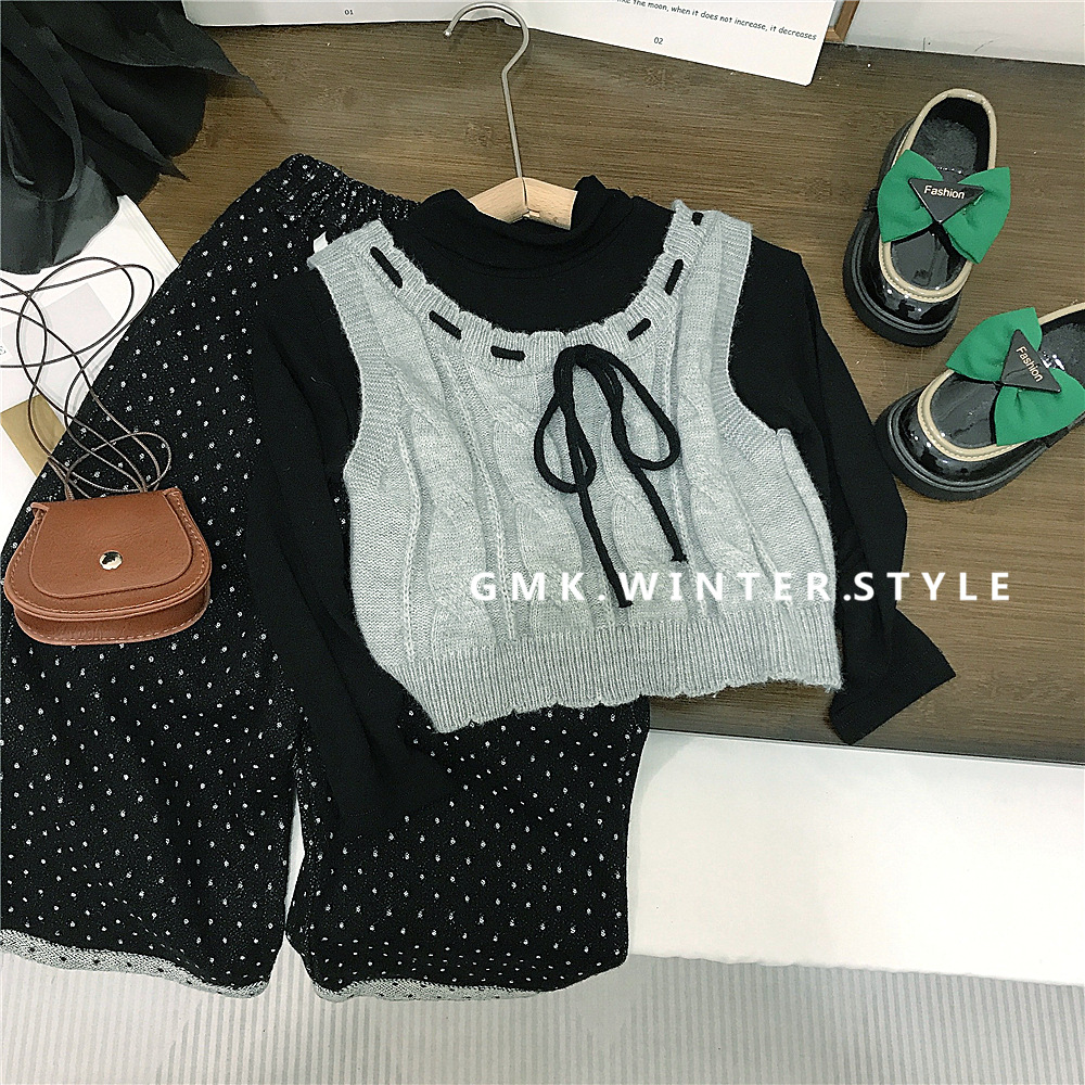 한국 아동복 소녀 가을 새 아기 소녀 울 조끼 어린이 바닥 셔츠 웨이브 포인트 스트레이트 바지 대외 무역스토어 가기