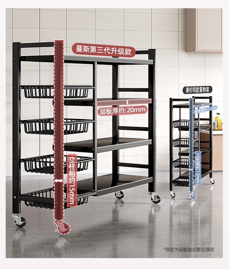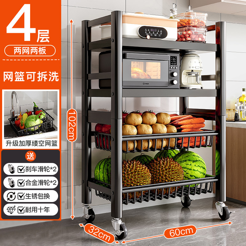 厨房置物架落地多层蔬菜篮子收纳架家用多功能杂物架零食储物架子