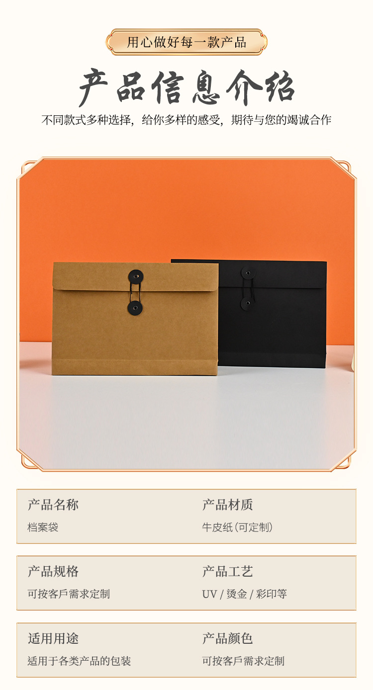 크래프트 종이 파일 가방 맞춤형 사무실 데이터 저장 가방 두껍게 포장 된 로프 유형 대용량 파일 가방 맞춤형 로고