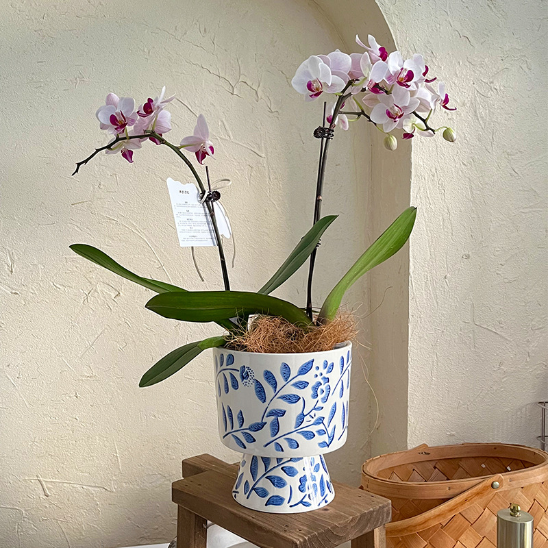 새로운 중국 호접란 특수 꽃 냄비 하이 엔드 파란색과 흰색 도자기 꽃병 스몰 사이즈 푸 세라믹 캐릭터 가정용 난초 꽃 냄비스토어 가기