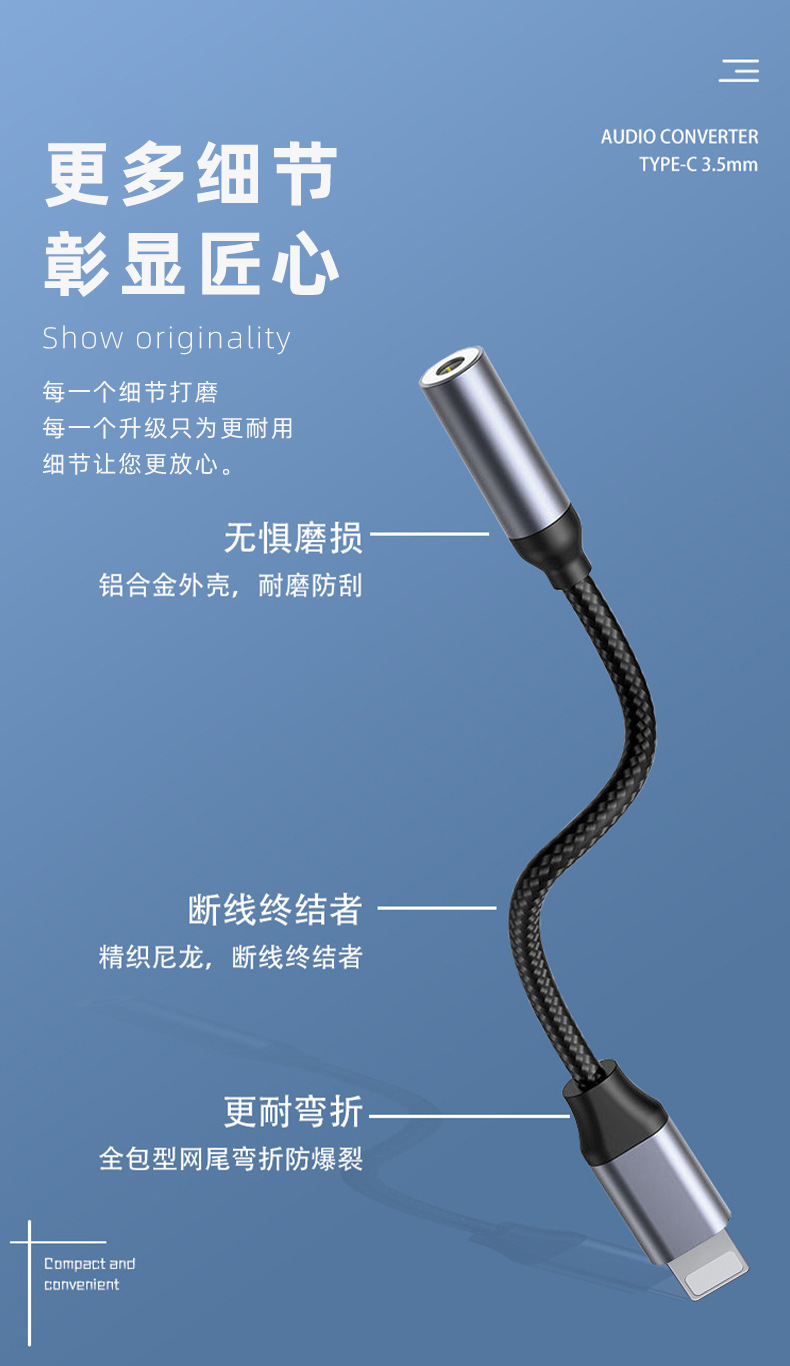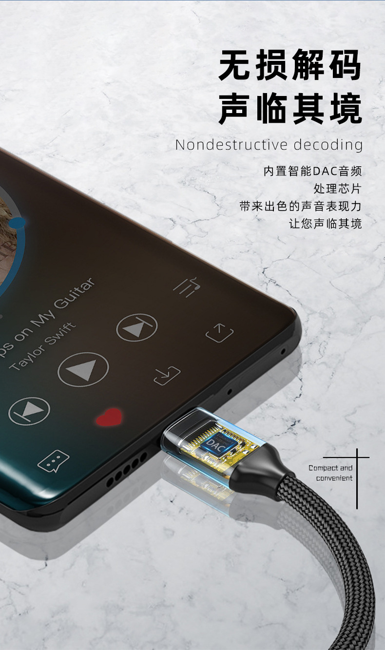 typec-3.5mm 이어폰 어댑터는 애플과 화웨이에서 음악을 듣기 위한 디지털 오디오 어댑터 케이블 외부 연결에 적합합니다.스토어 가기