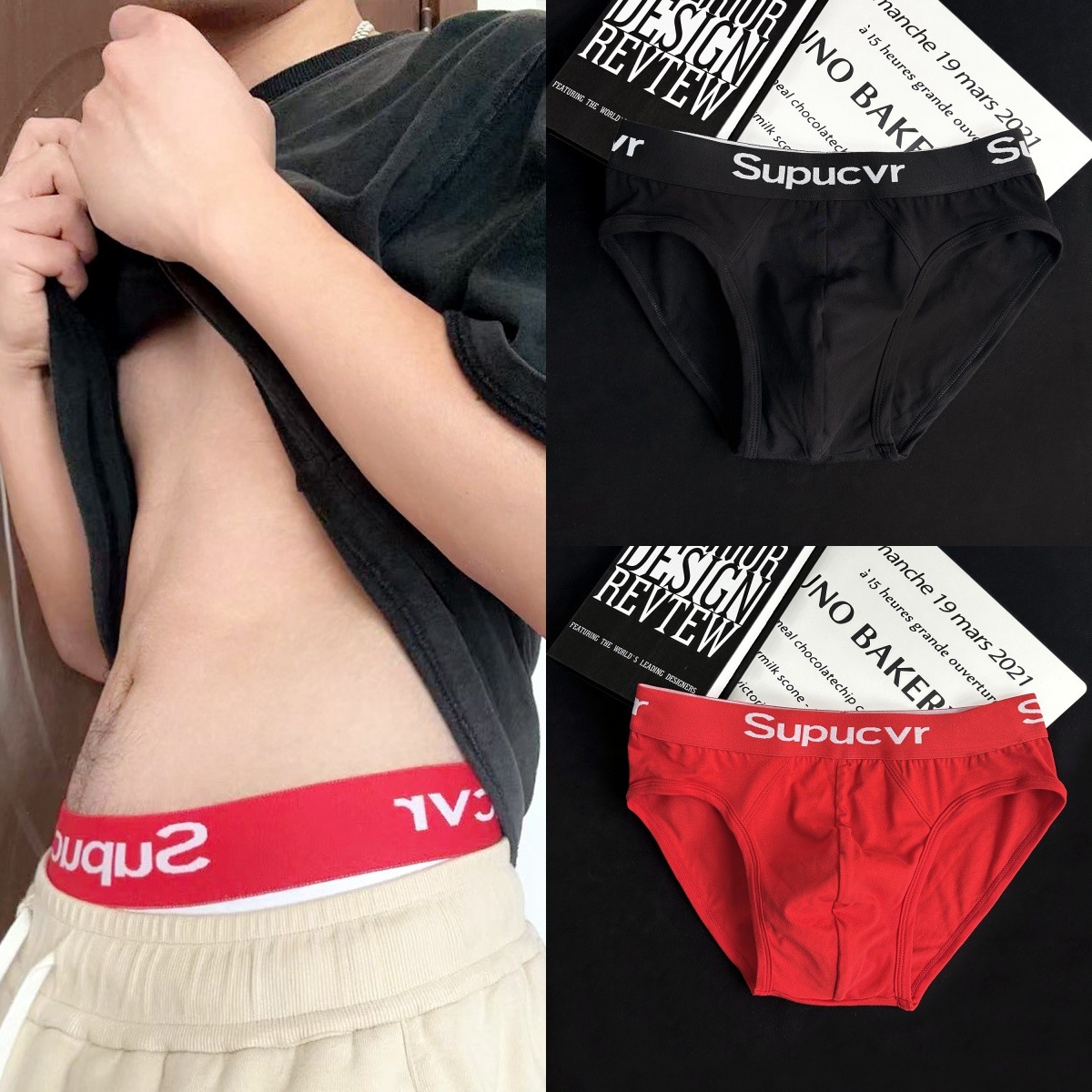 새로운 수프 트렌디 브랜드 속옷 남성용 퓨어 코튼 브리프 스포츠 학생 개성 바지 편안한 통기성 탄성 바지