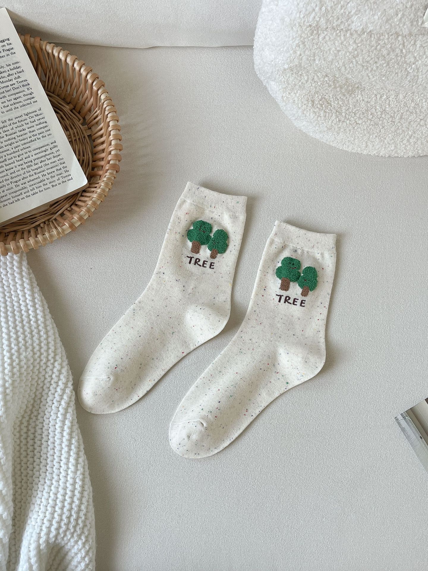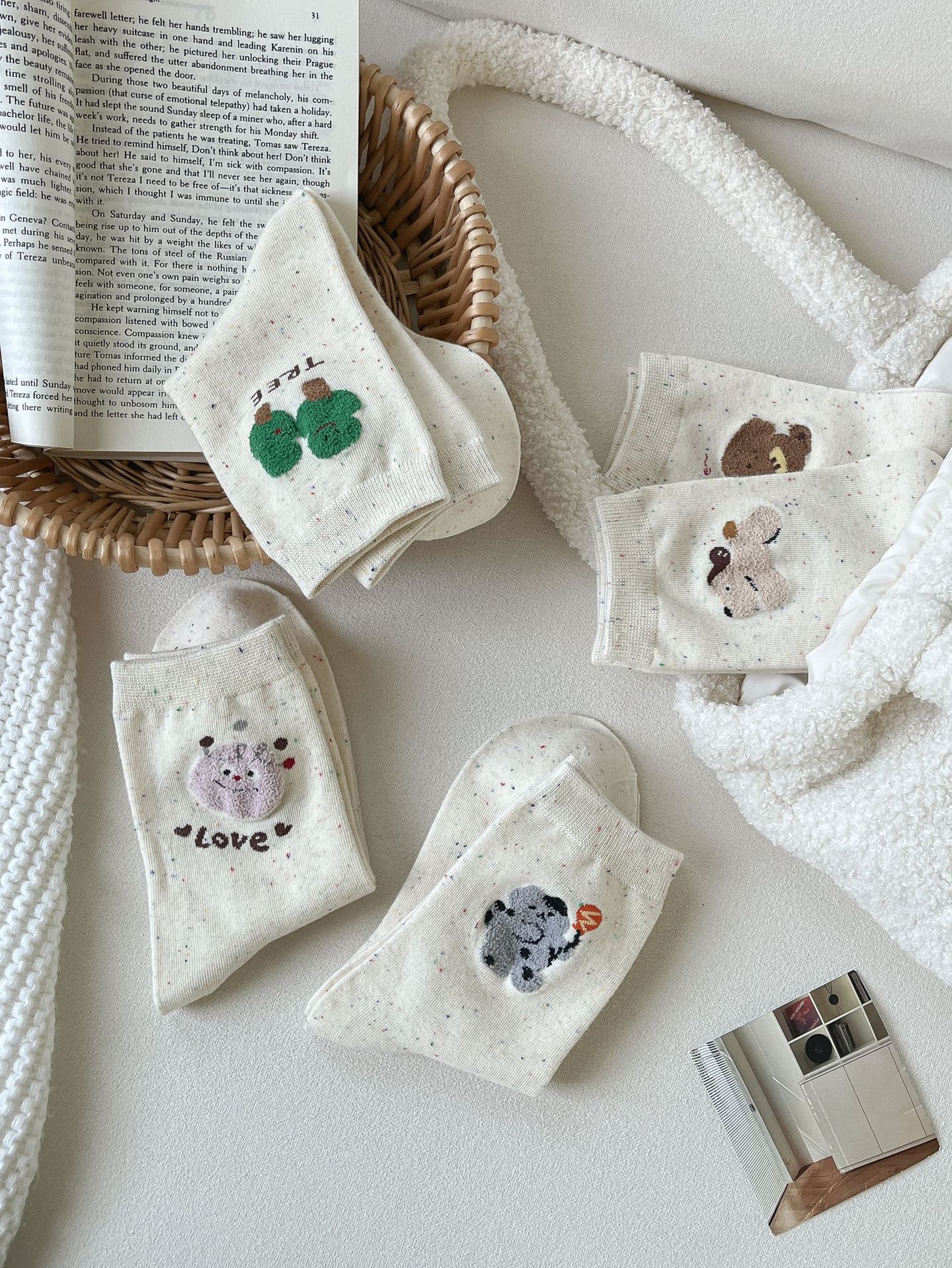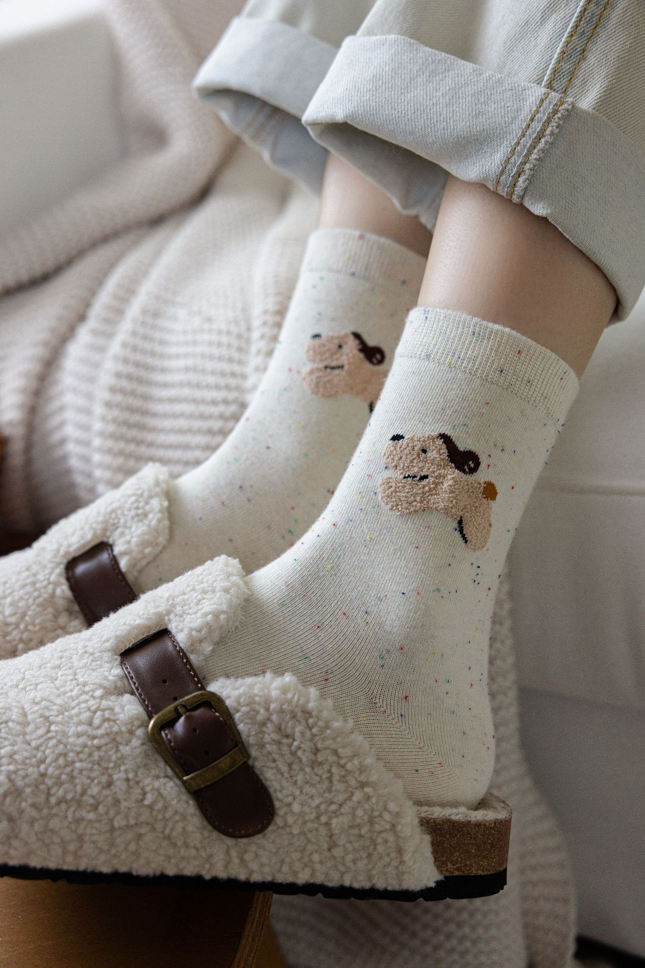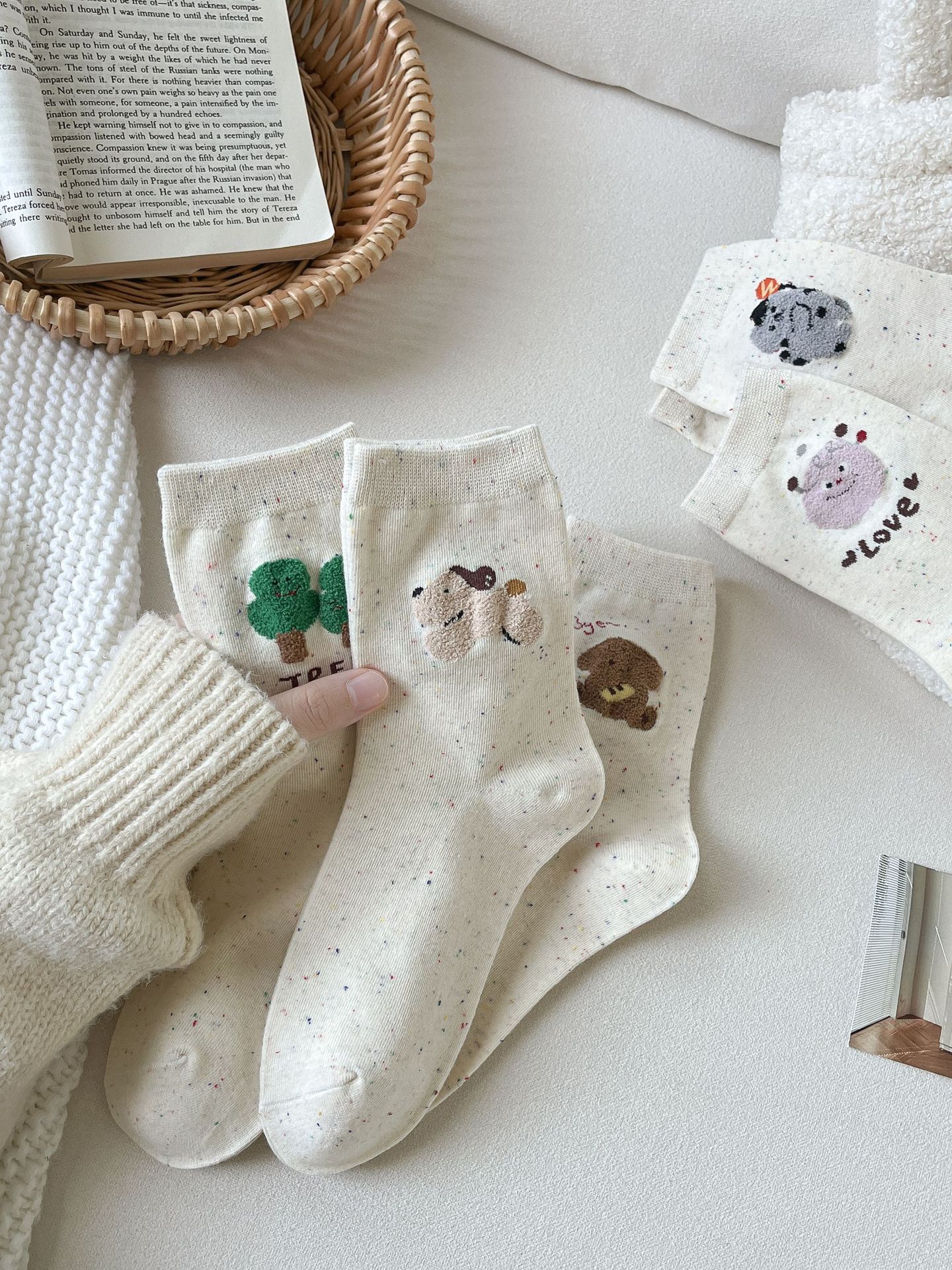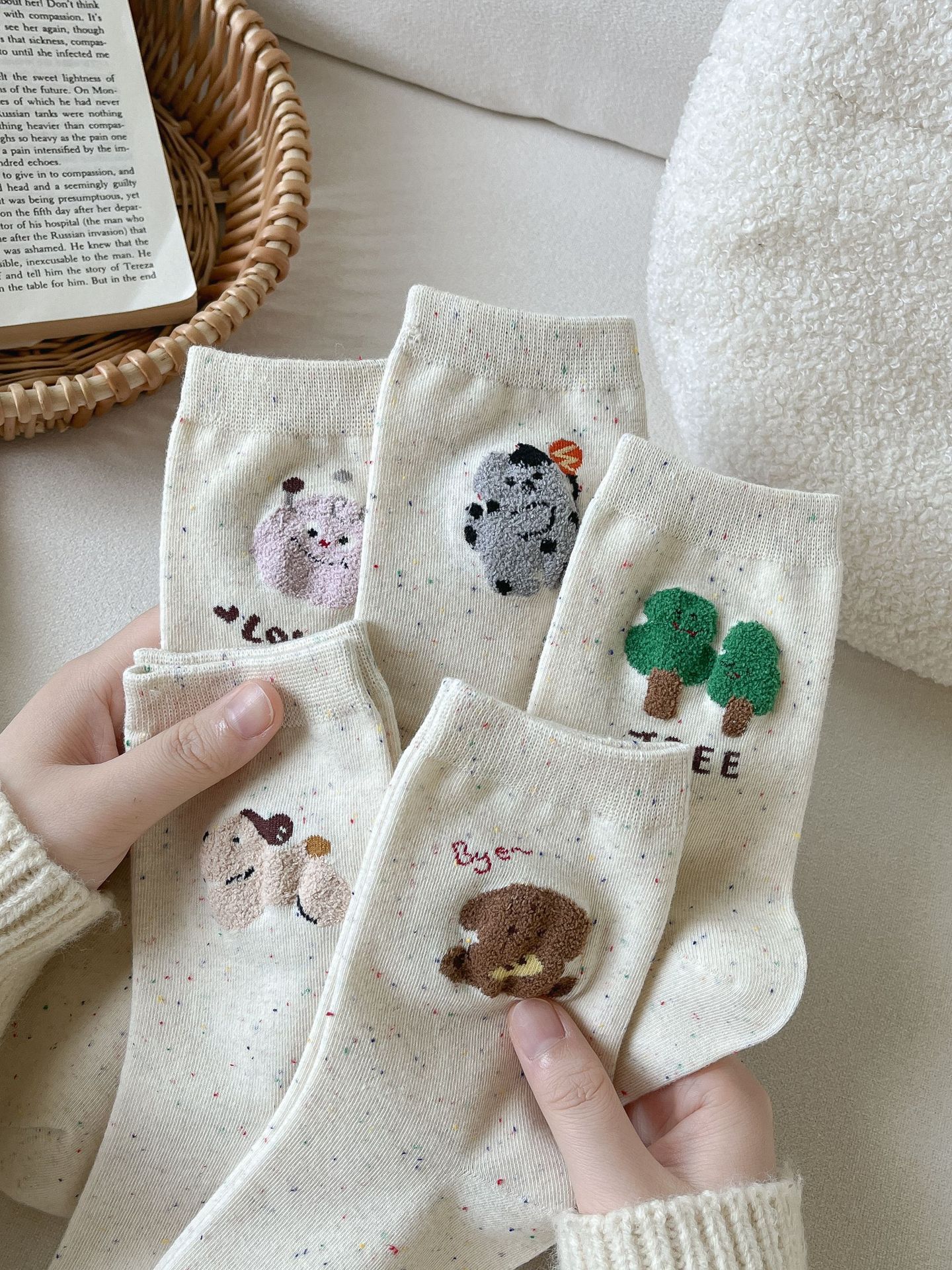 오른 원사 양말 여성 가을과 겨울 신간 만화 귀여운 새끼 고양이 중간 길이 양말 한국식 학술 스타일 스타킹