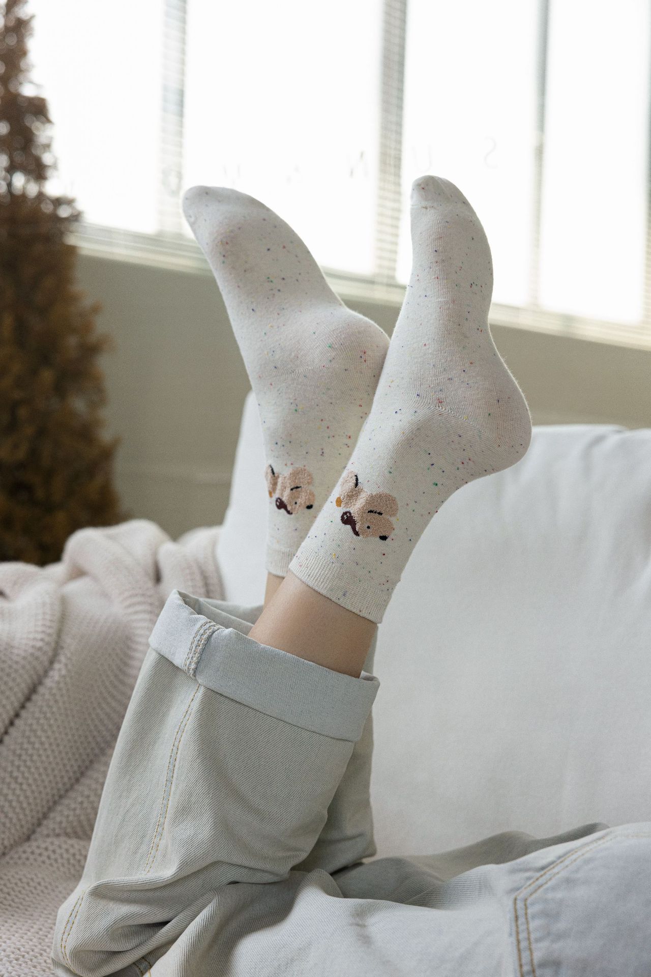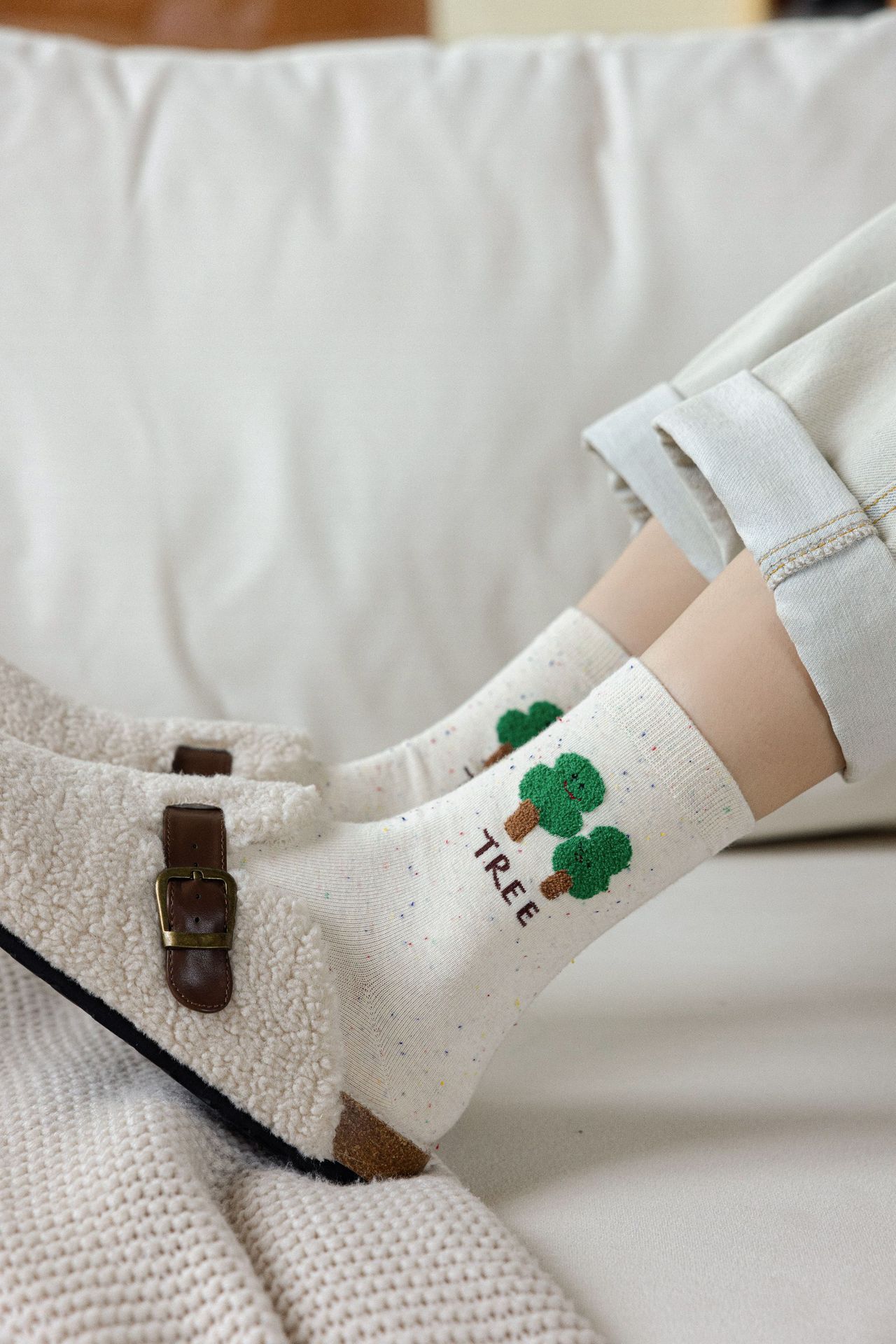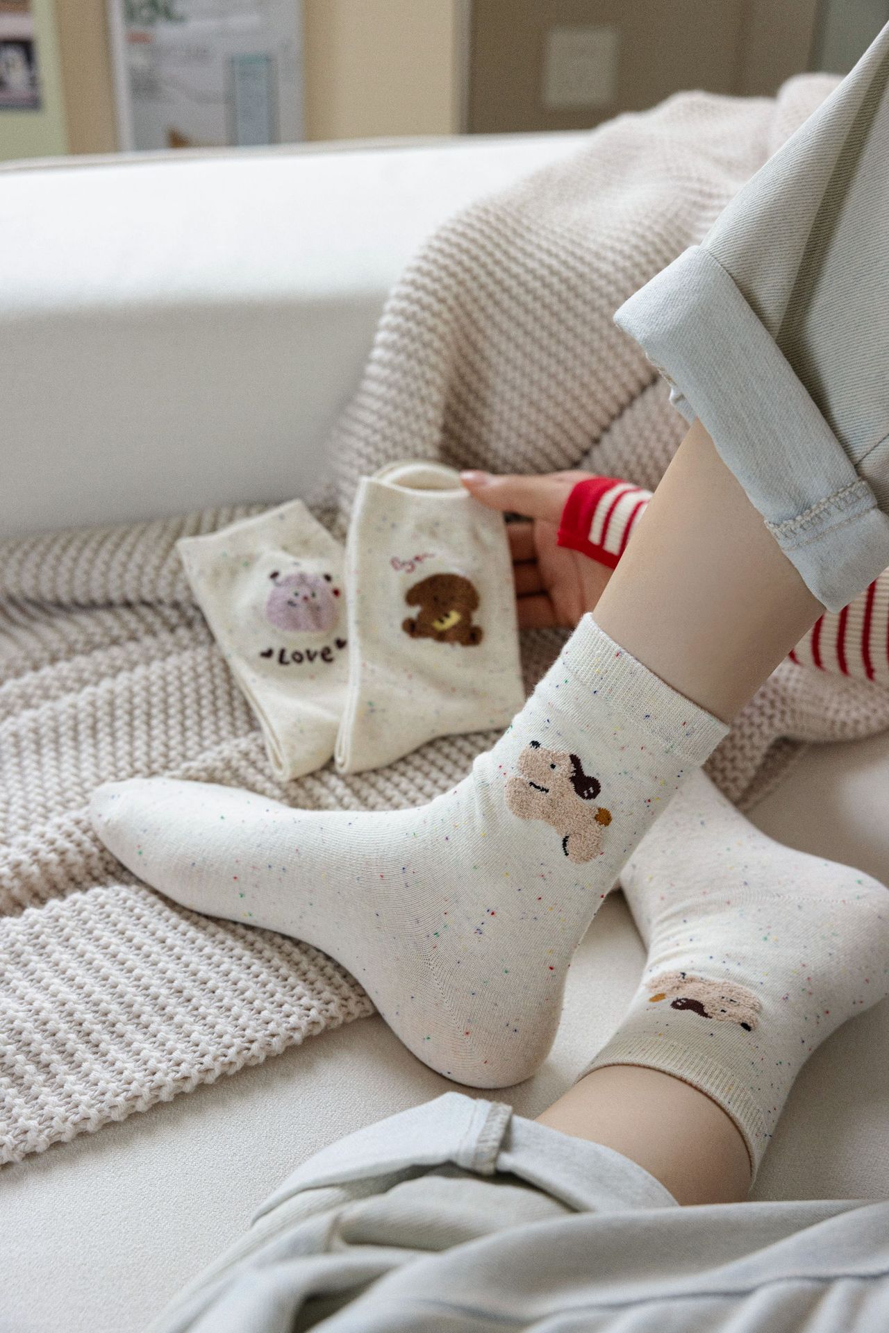 오른 원사 양말 여성 가을과 겨울 신간 만화 귀여운 새끼 고양이 중간 길이 양말 한국식 학술 스타일 스타킹스토어 가기