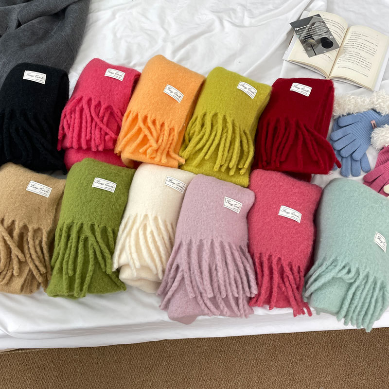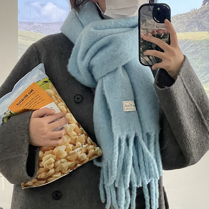 20% 양모 스카프 여성 가을과 겨울 한국 스타일 올 매치 새로운 캔디 컬러 단색 커플 캔디 컬러 스카프 조수스토어 가기