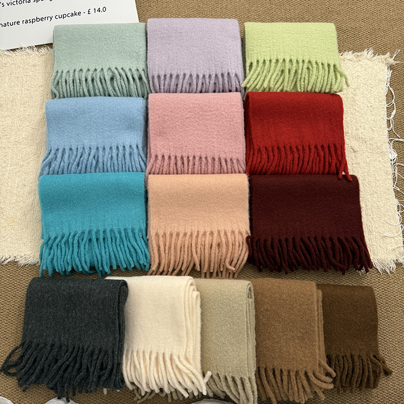 20% 양모 스카프 여성 가을과 겨울 한국 스타일 올 매치 새로운 캔디 컬러 단색 커플 캔디 컬러 스카프 조수