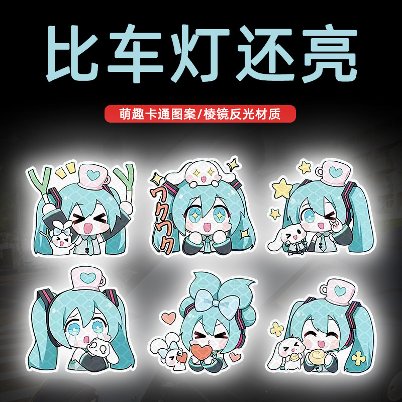 • 하츠네 시나몬 독 반사 스티커 - 6팩