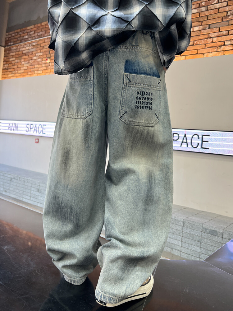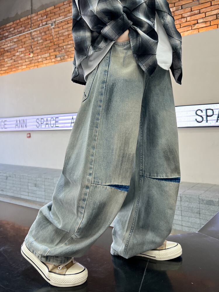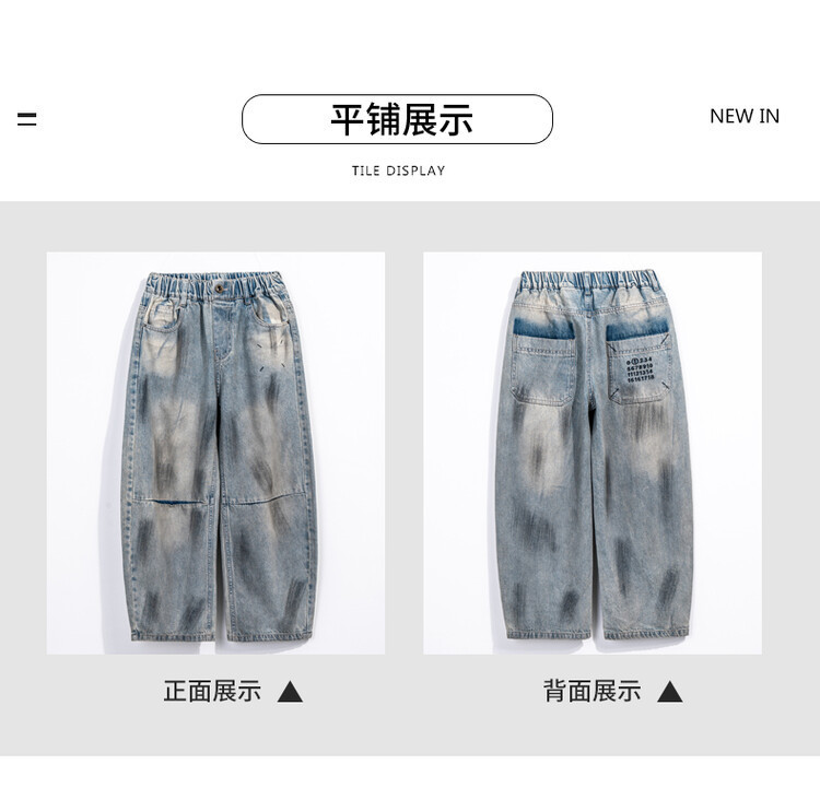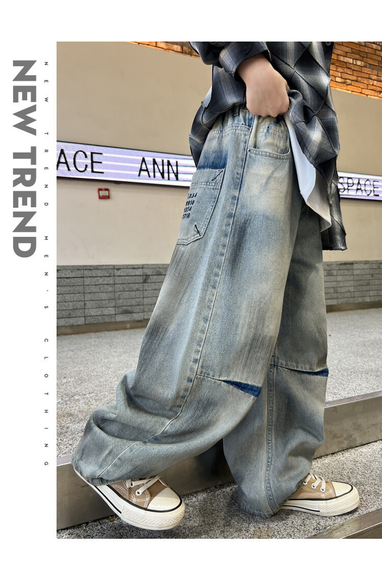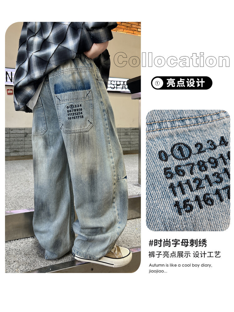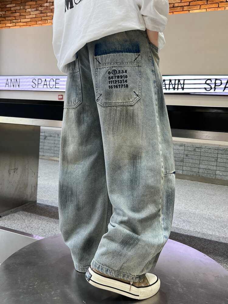 대외 무역 소년 청바지 유행 더피 잘 생긴 소년 더러운 바지 한국 봄과 가을 어린이 느슨한 넓은 다리 스트레이트 바지스토어 가기