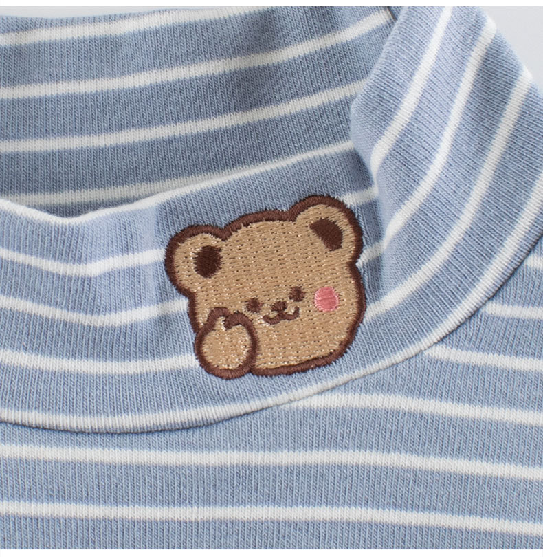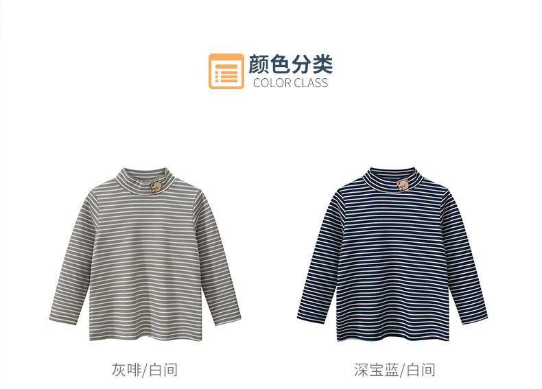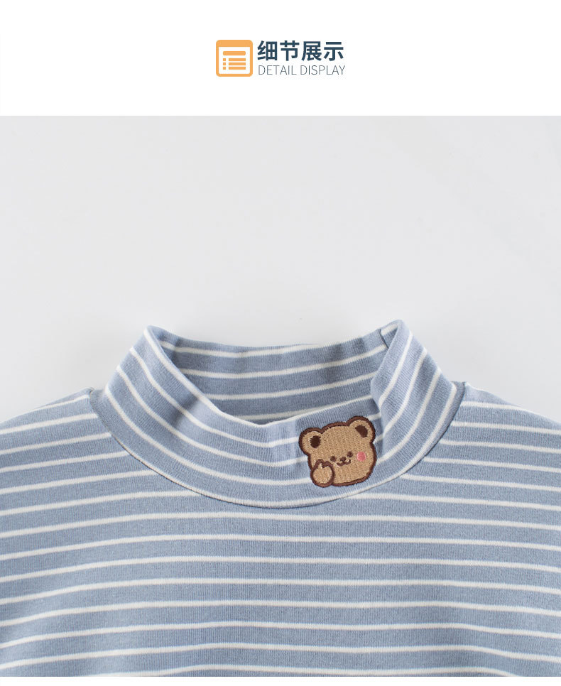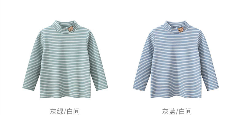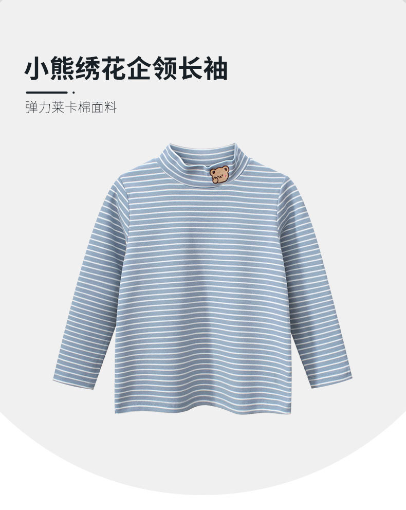 27 어린이 가을 아동복 스트라이프 바닥 셔츠 하이 칼라 소년 아기 옷 자수 머리카락 세대스토어 가기