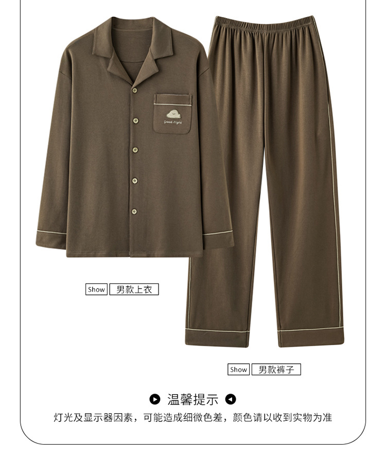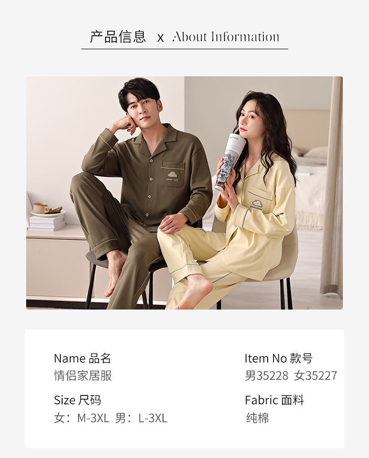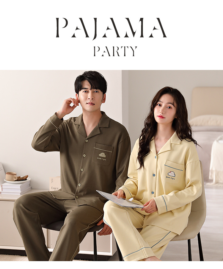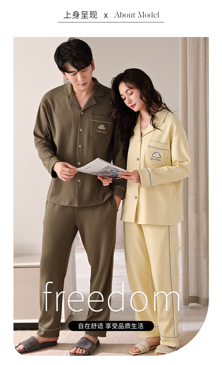 순면 커플 잠옷 여성의 봄과 가을 카디건 옷깃 캐주얼 느슨한 겨울 남자 홈 옷 세트 입고