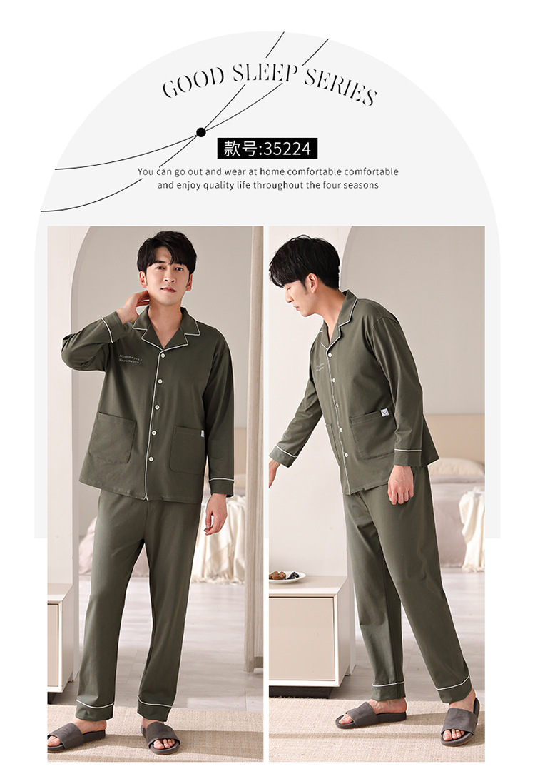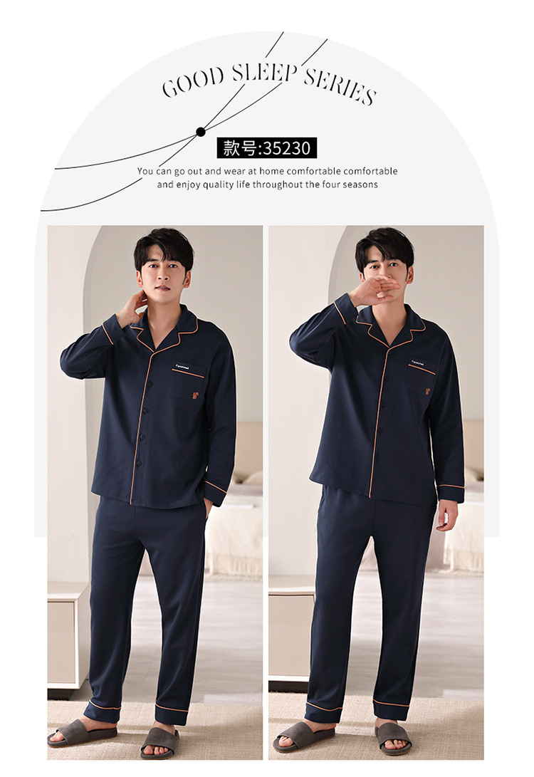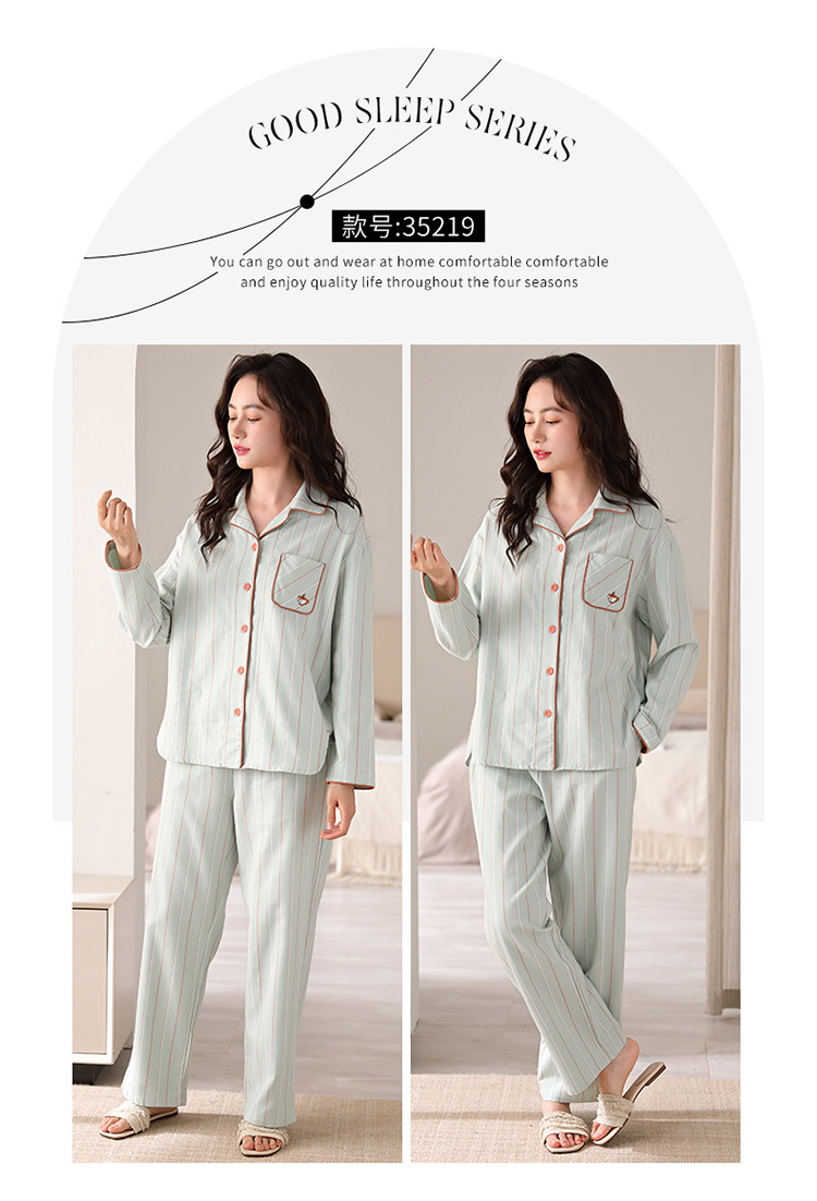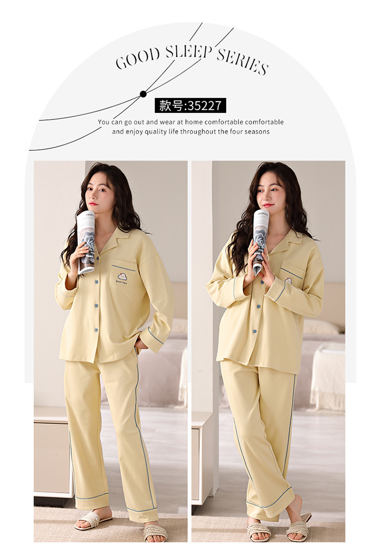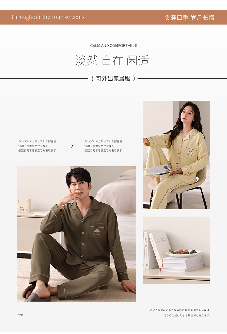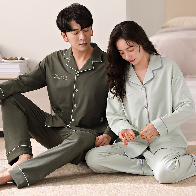 순면 커플 잠옷 여성의 봄과 가을 카디건 옷깃 캐주얼 느슨한 겨울 남자 홈 옷 세트 입고스토어 가기