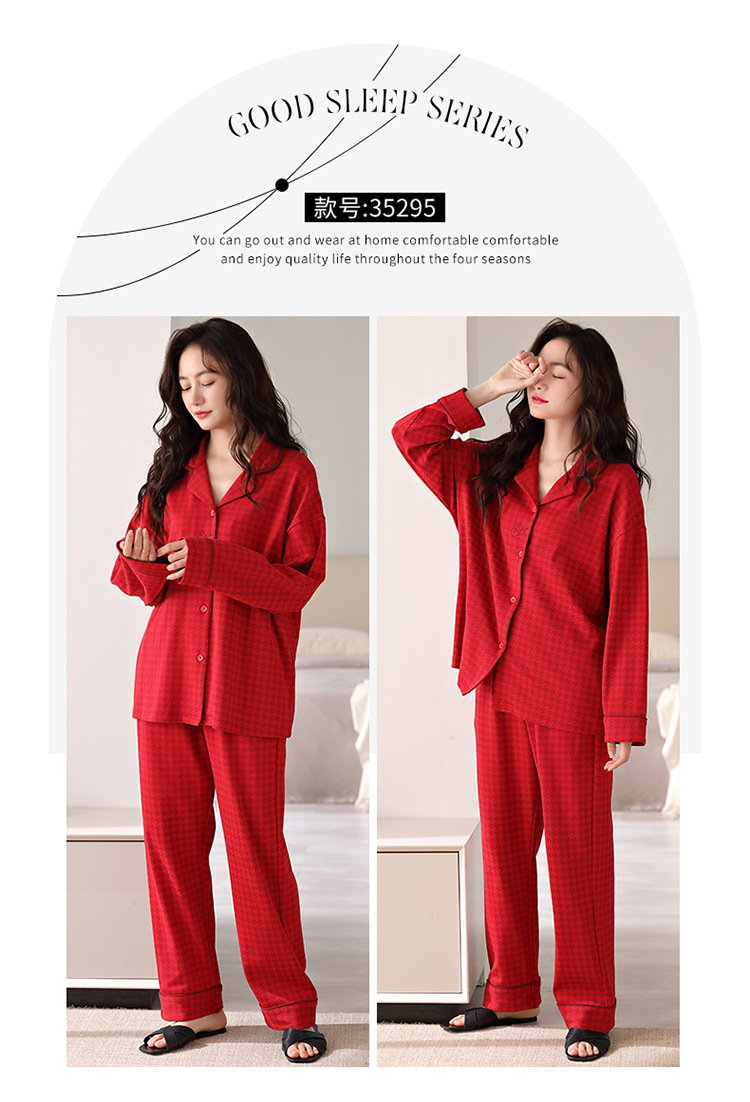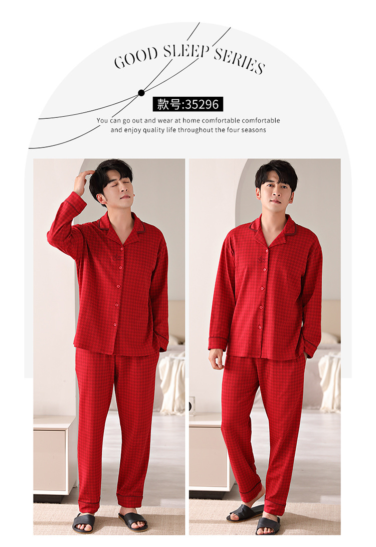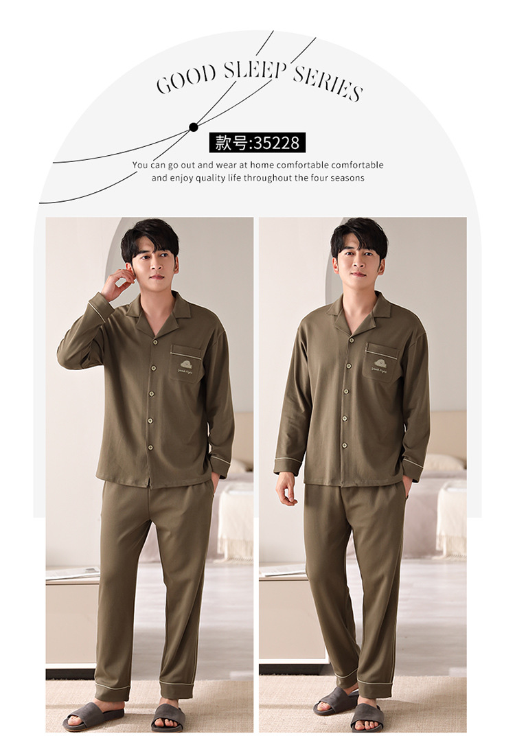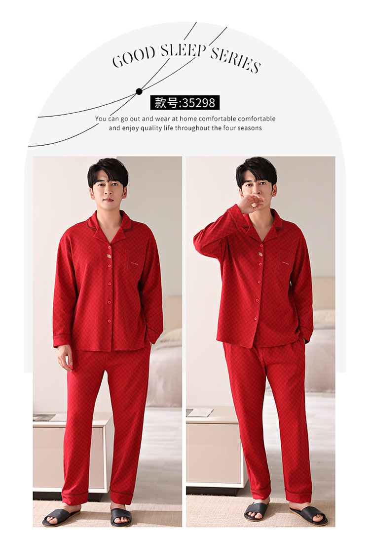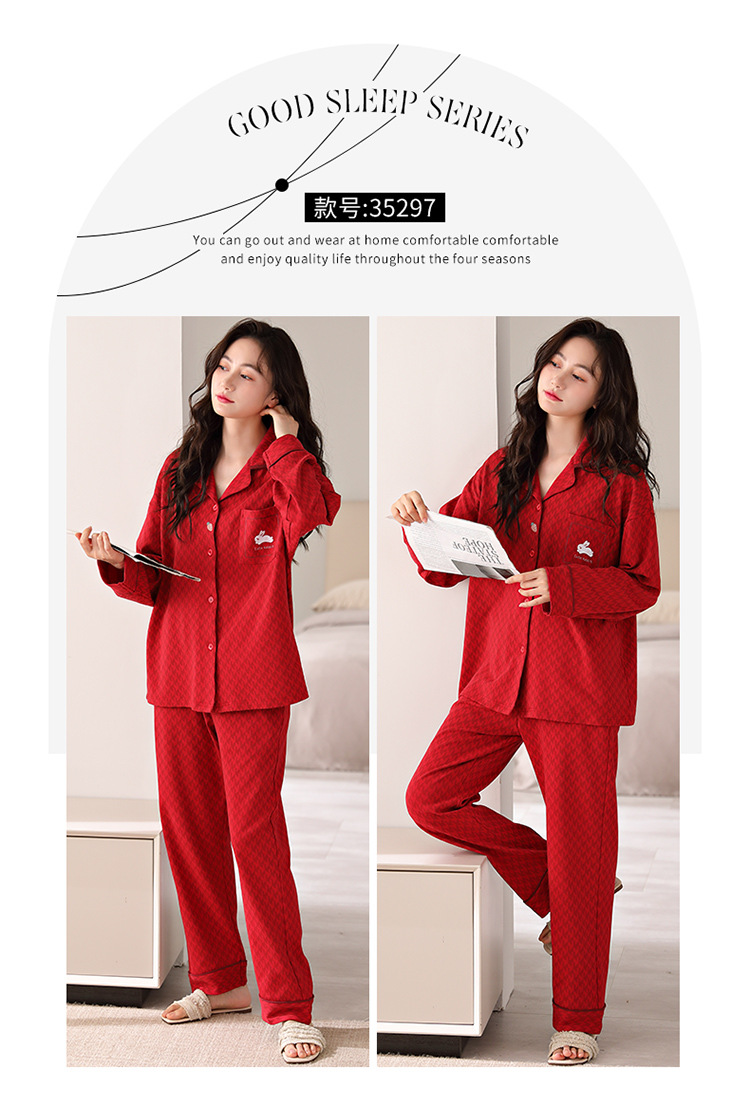 순면 커플 잠옷 여성의 봄과 가을 카디건 옷깃 캐주얼 느슨한 겨울 남자 홈 옷 세트 입고스토어 가기