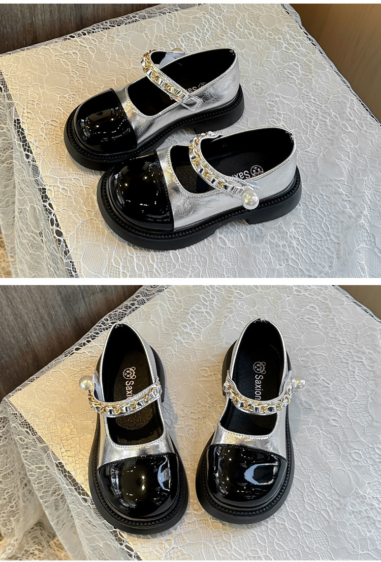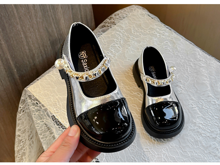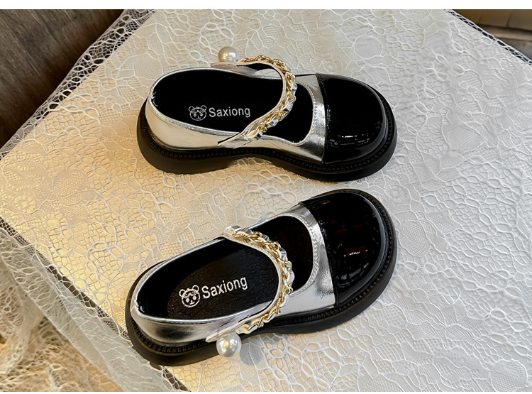소녀 한국 스타일 유행 작은 가죽 신발 2025 봄과 가을 스타일 소녀의 세련된 메리 제인 싱글 레이어 신발 중 큰 어린이 사랑 신발