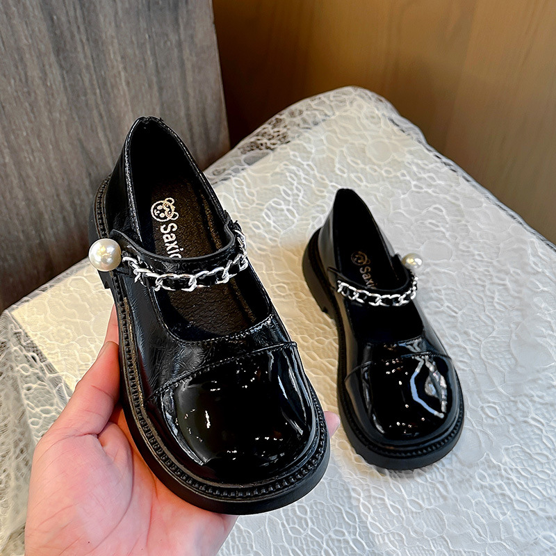 소녀 한국 스타일 유행 작은 가죽 신발 2025 봄과 가을 스타일 소녀의 세련된 메리 제인 싱글 레이어 신발 중 큰 어린이 사랑 신발스토어 가기