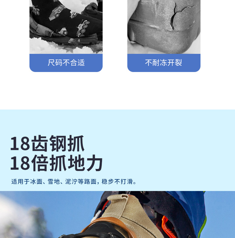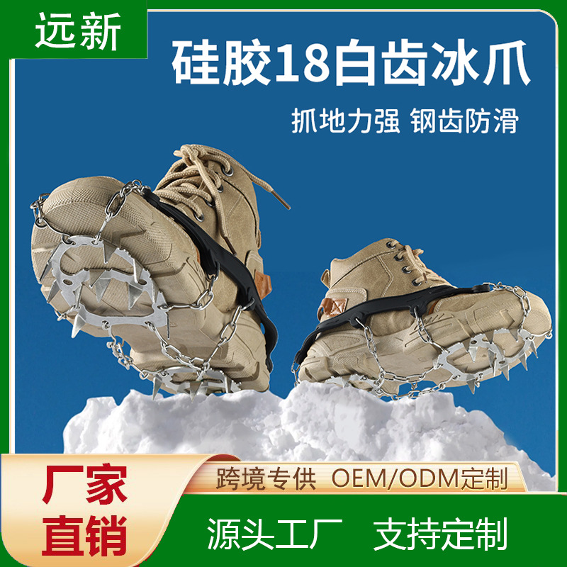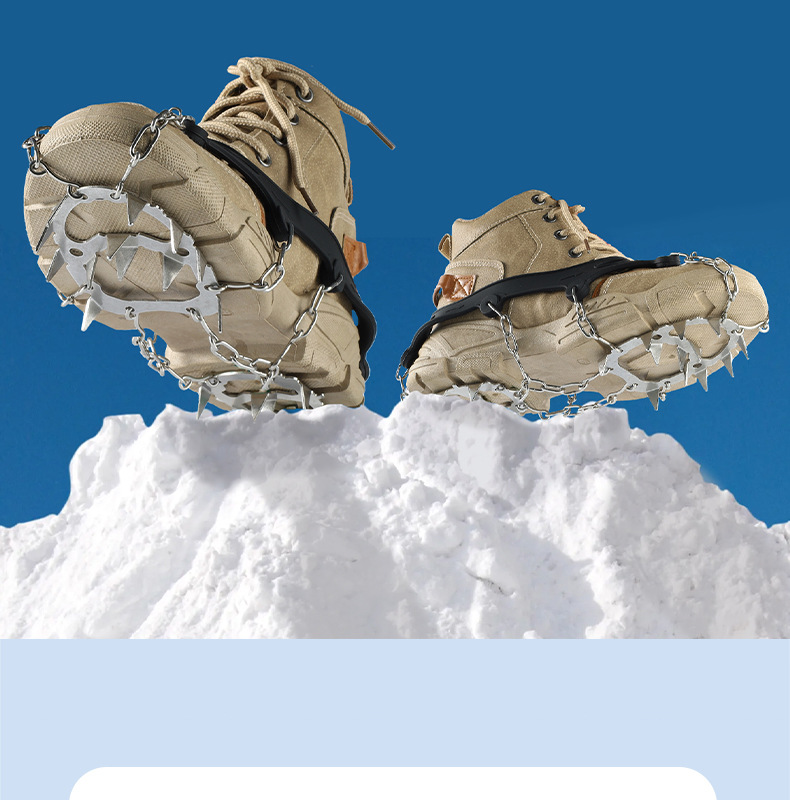 업그레이드 된 간단한 얼음 등반 장비 산 등반 얼음 그랩 미끄럼 방지 신발 커버 스노우 신발 체인 네일 야외 스노우 클로 18-치아 얼음 발톱
