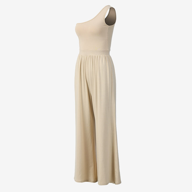 인쇄 로고 사용자 정의 로고 선 스타일 기울어 진 어깨 원피스 넓은 다리 바지 정장 요가 착용 여성을위한 게으른 필라테스 점프 슈트