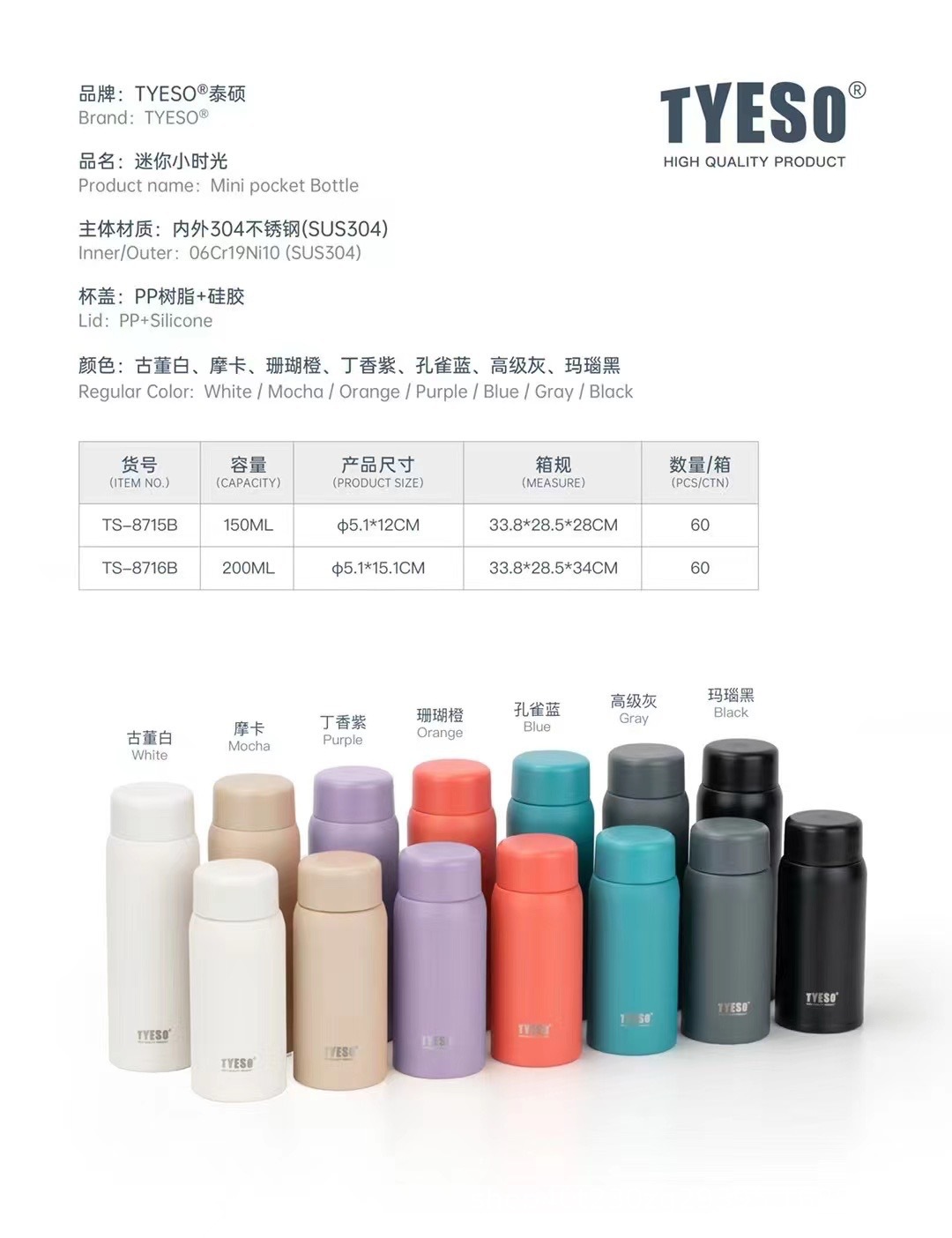 새로운 스타일 Taishuo 작은 아가씨 작은 용량 휴대용 고품질 스테인레스 스틸 보온병 컵 창조적 인 포켓 물 컵