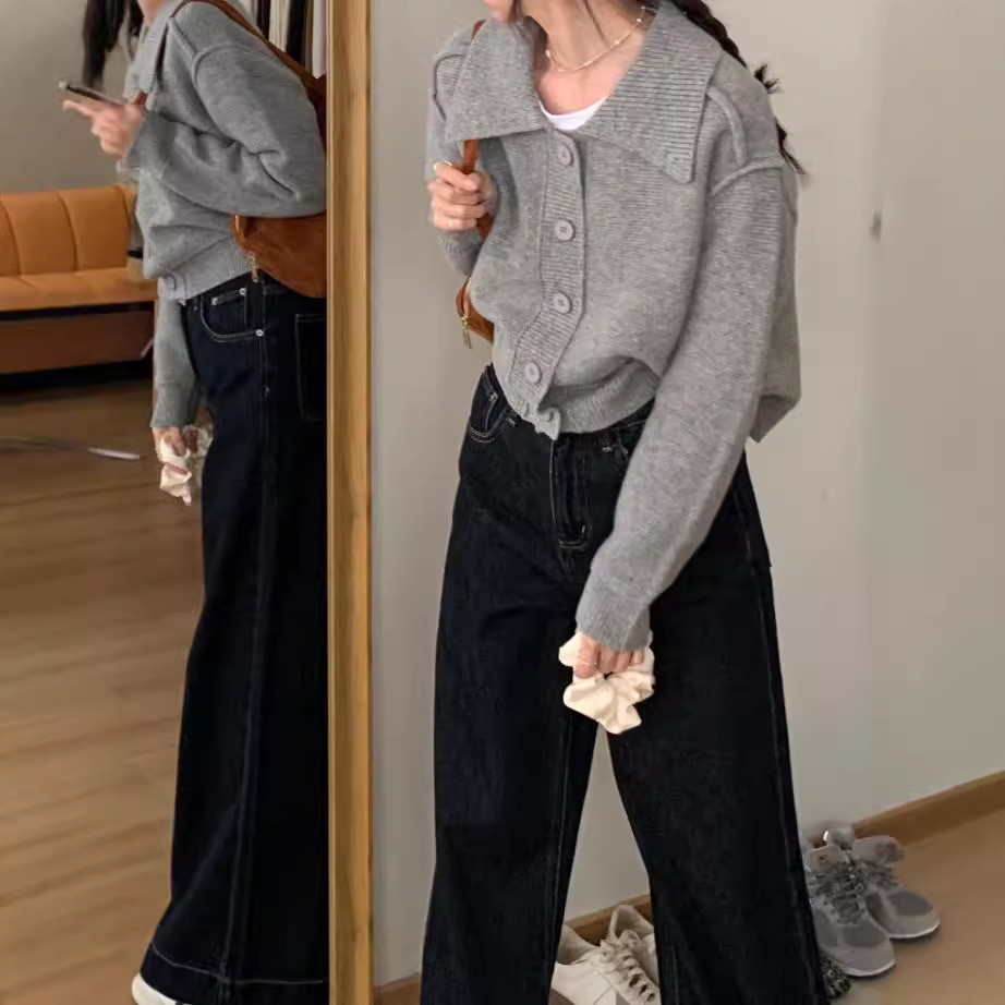 회색 울 니트 스웨터 여성 가을 의류 2026 우아하고 부드럽고 편안한 신상 긴팔 가디건 코트 상의스토어 가기