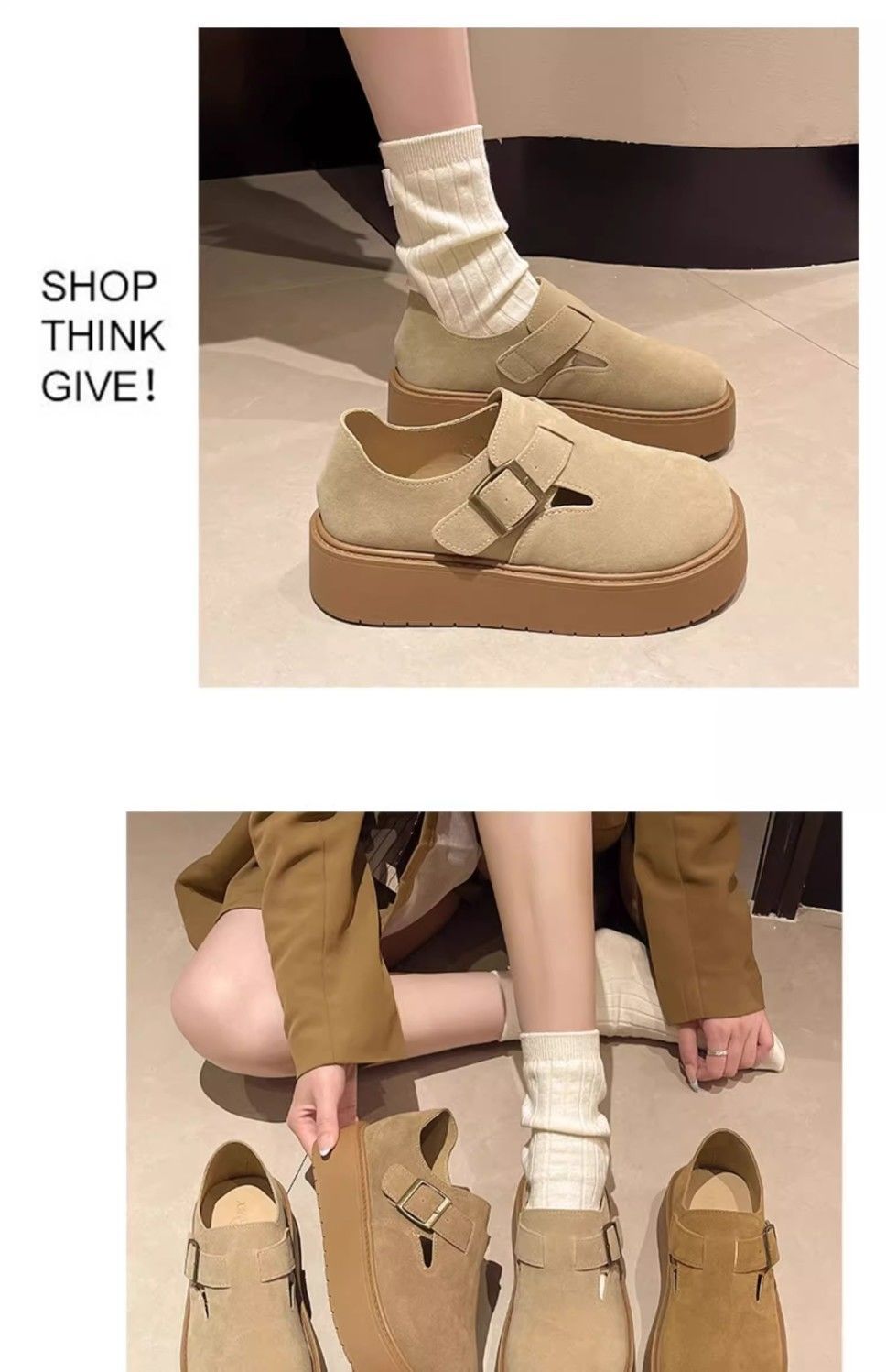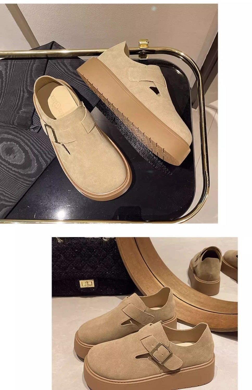 두꺼운 밑창 머핀 올 매치 올 인 클루 시브 버켄 신발 여자 2024 년 여름과 가을 새로운 복고풍 고층 페달 사랑 싱글 레이어 신발스토어 가기