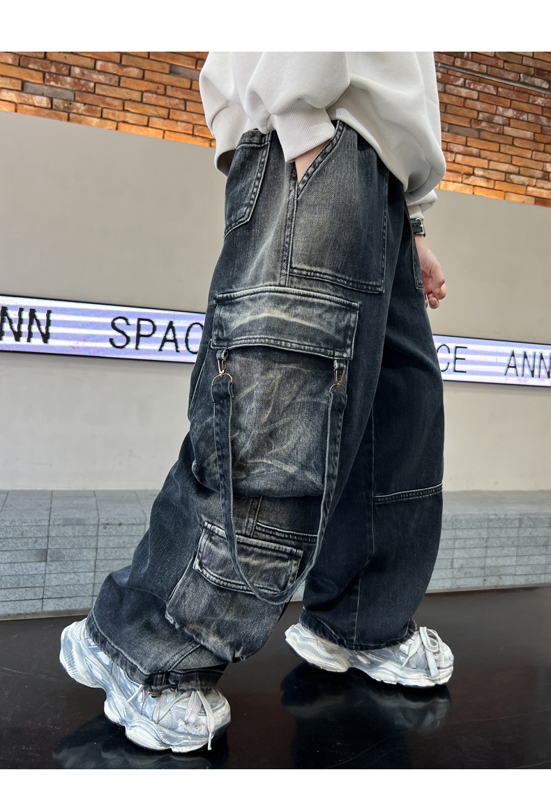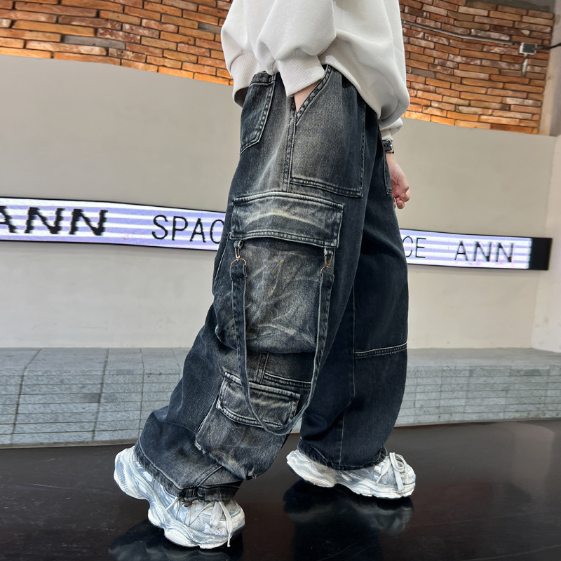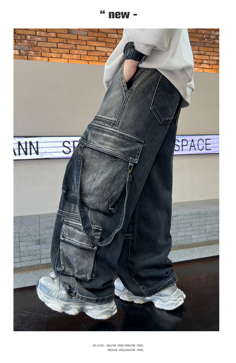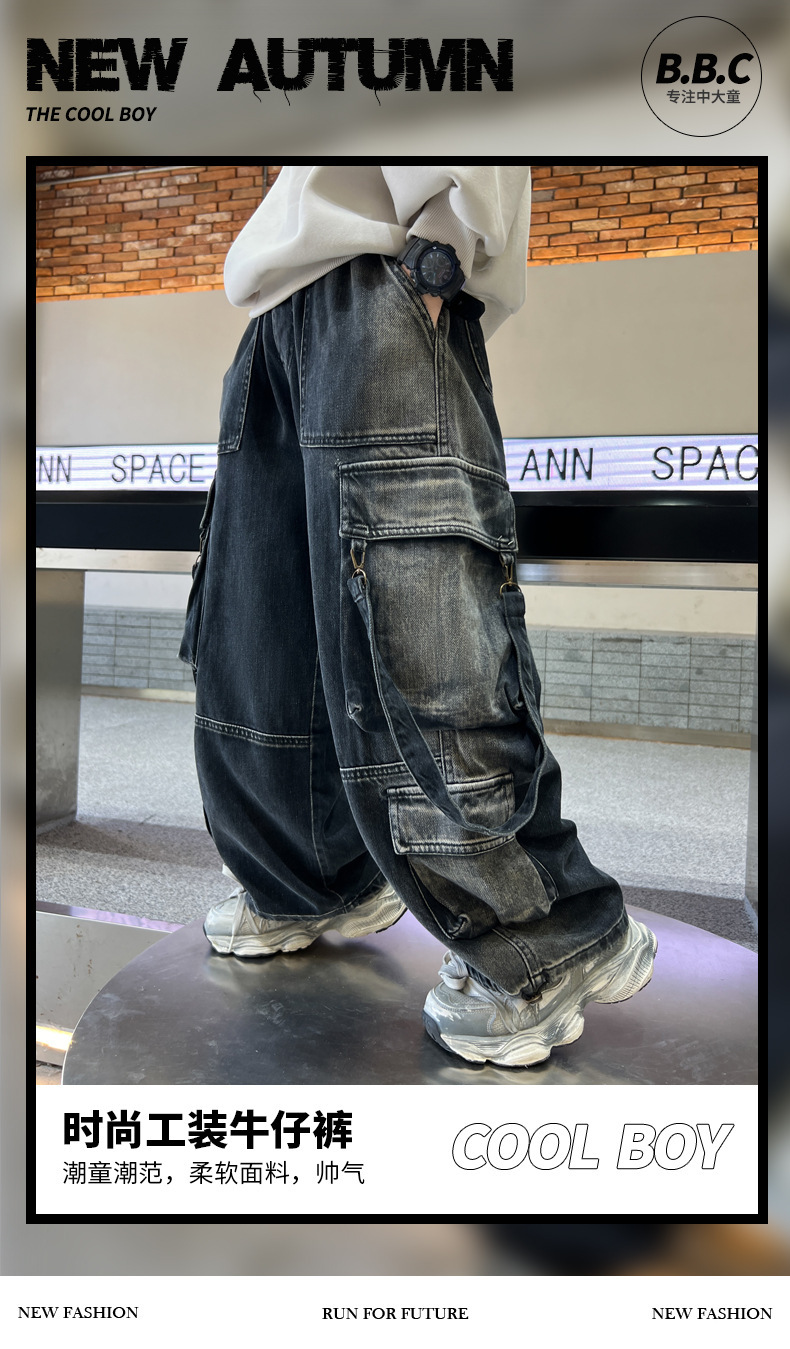 유행 시원한 어린이 바지 유행 봄과 가을 힙합 오버홀 소년 힙합 청바지 느슨한 한국 넓은 다리 바지스토어 가기