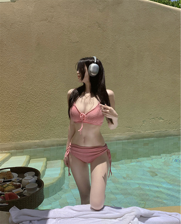 소스 공장 국경 간 한국 분할 수영복 여성 2024 새로운 캔디 컬러 비키니 비치 휴가 수영복스토어 가기
