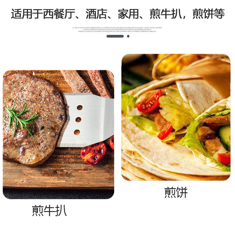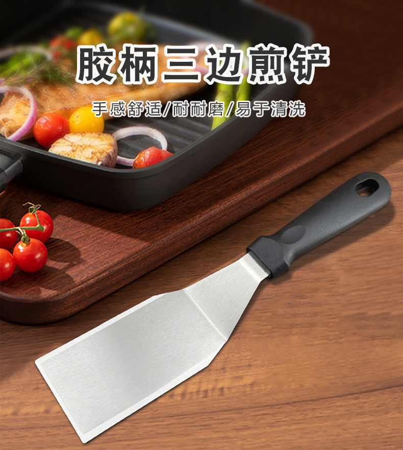 牛排煎铲漏铲904三边煎铲烹饪铲 耐高温防滑塑料柄料不锈钢理铲
