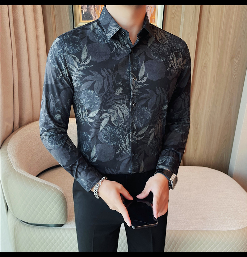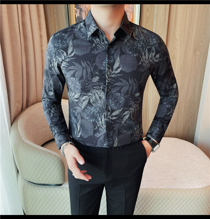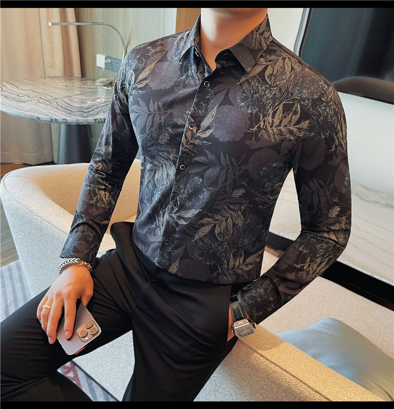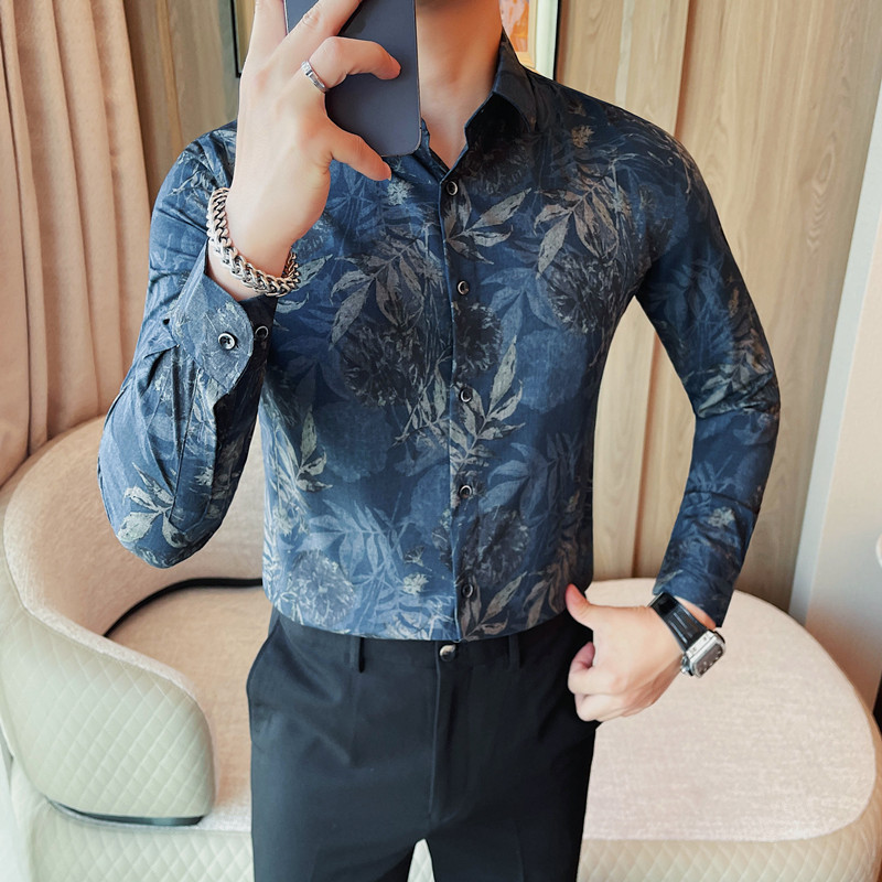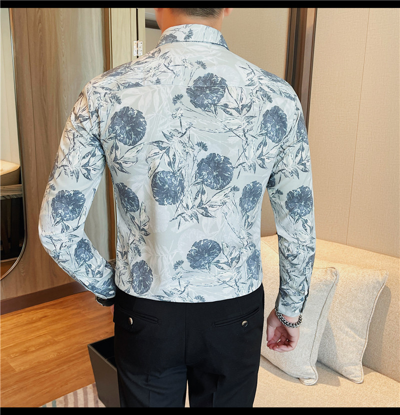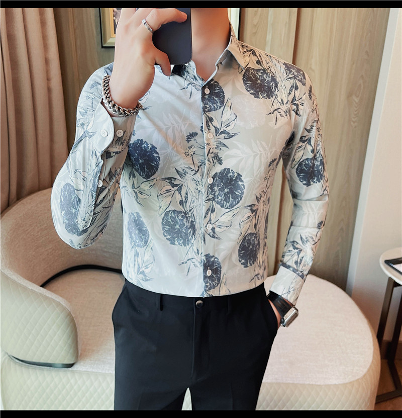 TikTok Genera 남성용 새 가을 꽃 셔츠 슬림핏 플랜트 백 잘 생긴 서양식 남성 청소년 긴팔베이스 셔츠
