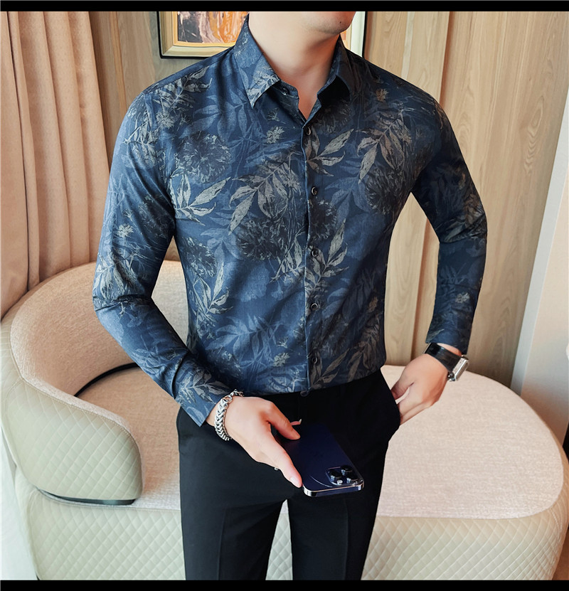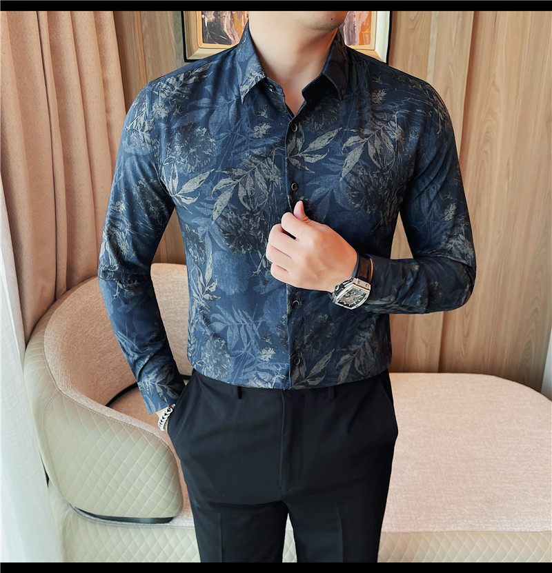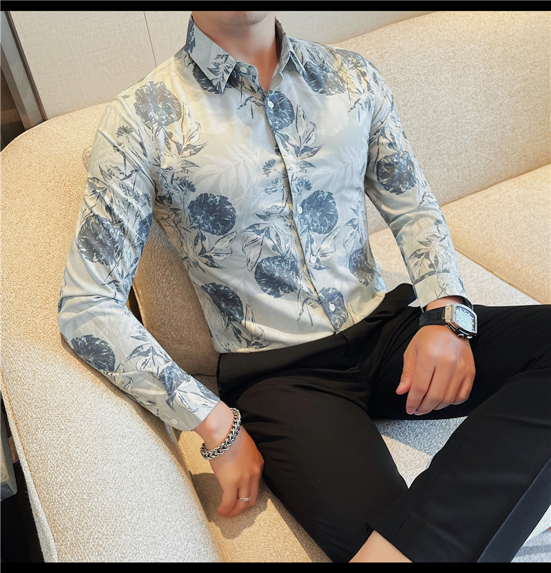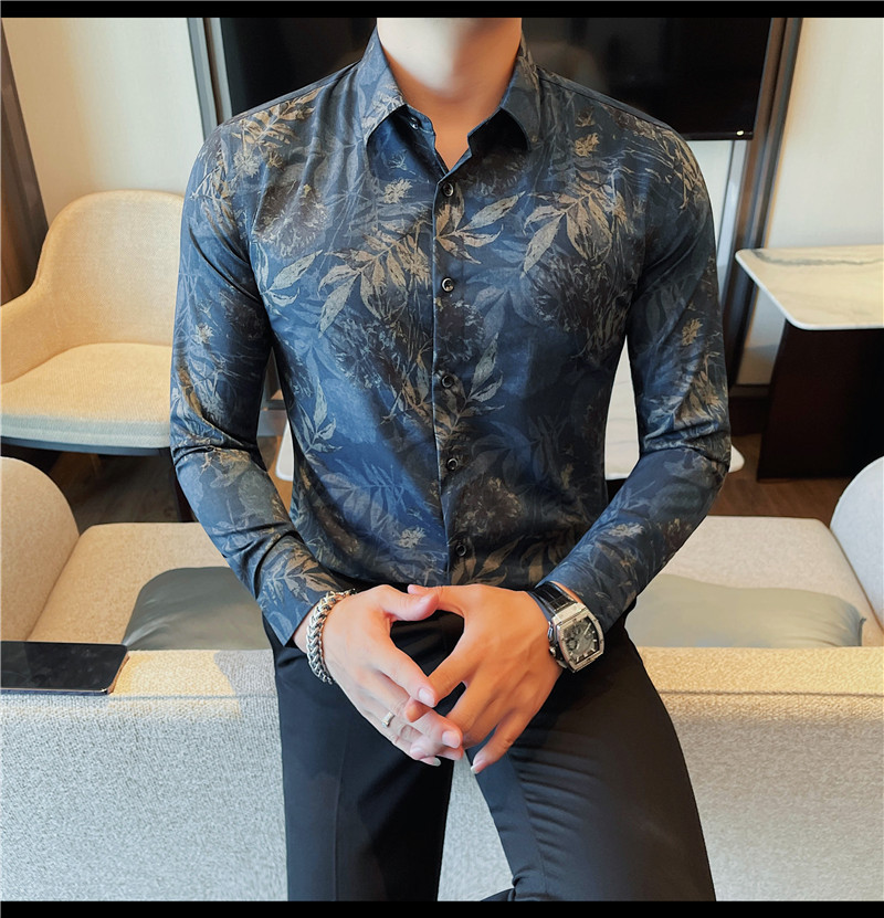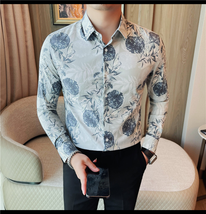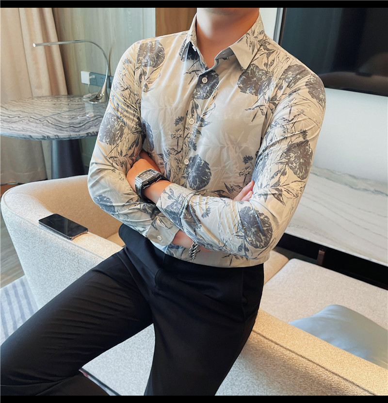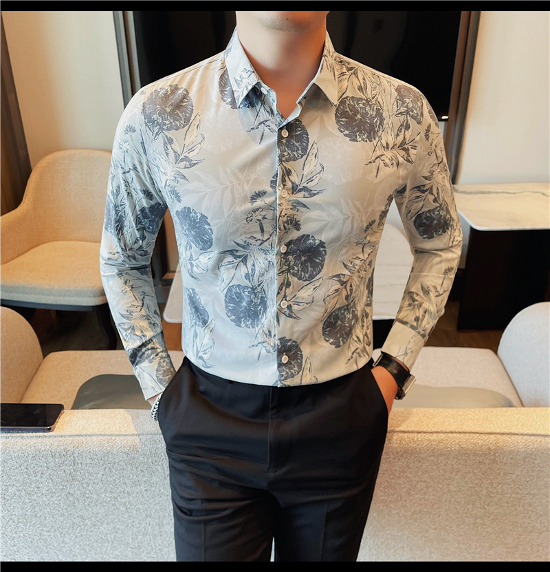 TikTok Genera 남성용 새 가을 꽃 셔츠 슬림핏 플랜트 백 잘 생긴 서양식 남성 청소년 긴팔베이스 셔츠