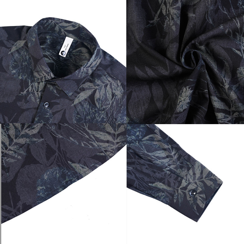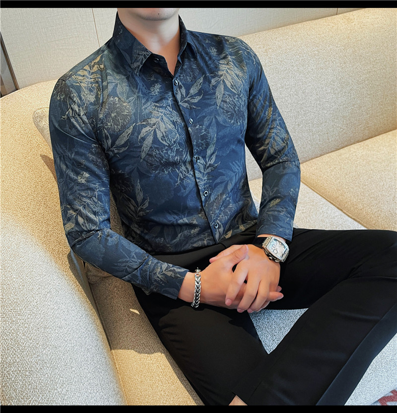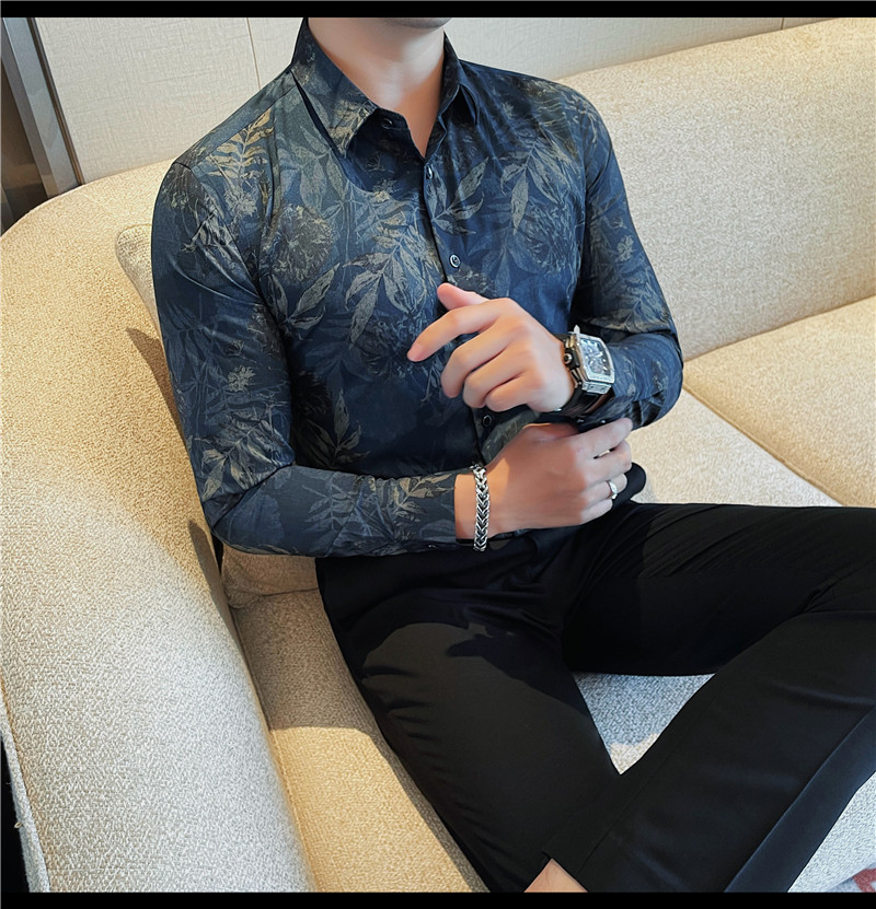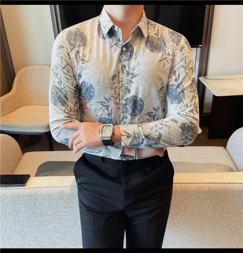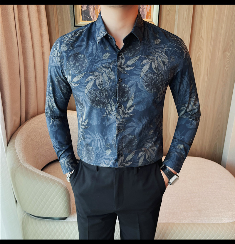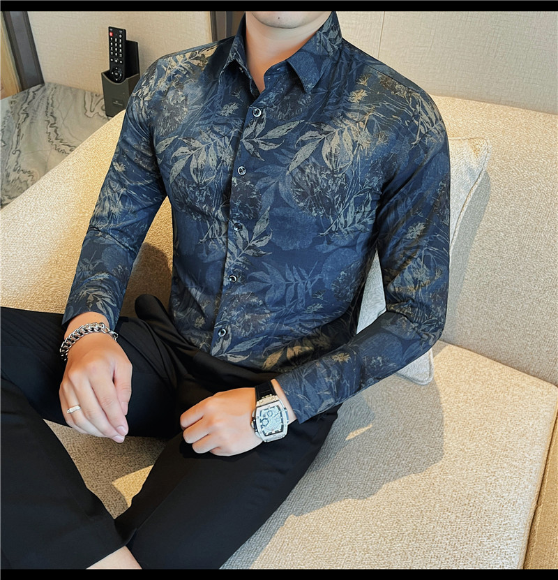 TikTok Genera 남성용 새 가을 꽃 셔츠 슬림핏 플랜트 백 잘 생긴 서양식 남성 청소년 긴팔베이스 셔츠