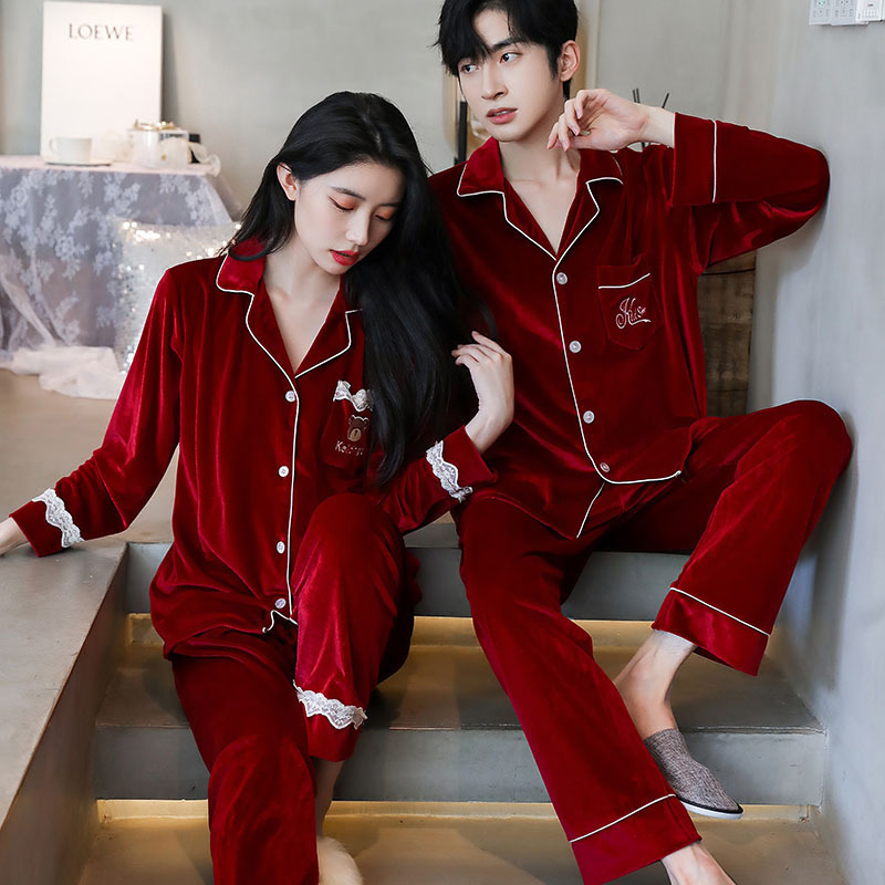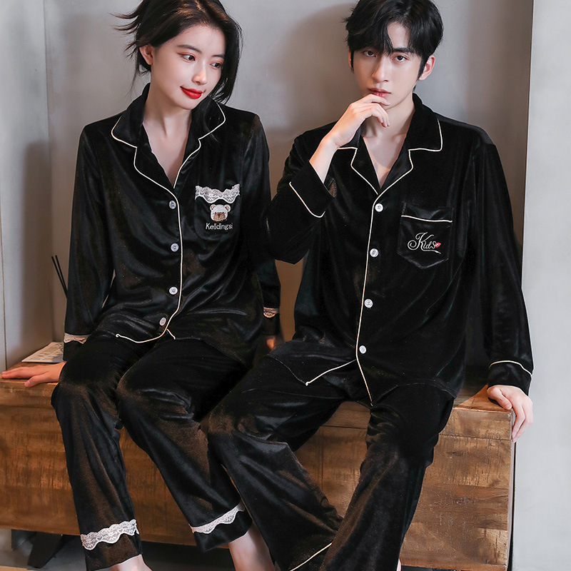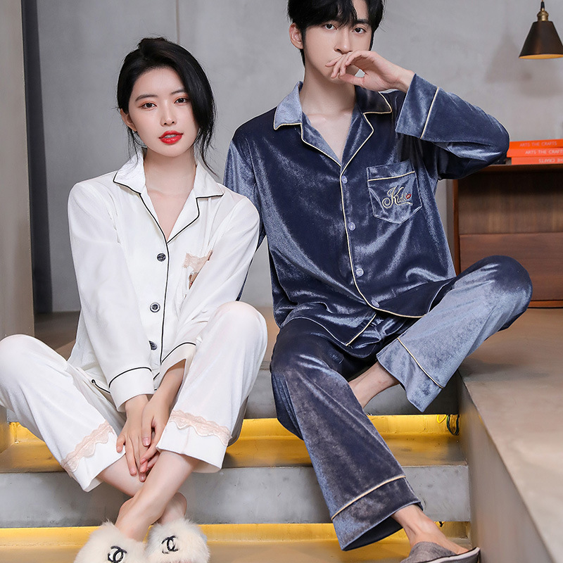 커플 잠옷 골드 벨벳 가을과 겨울 긴 소매 단색 봄과 가을 캐주얼 남성 카디건 플러스 사이즈 홈 의류 세트스토어 가기