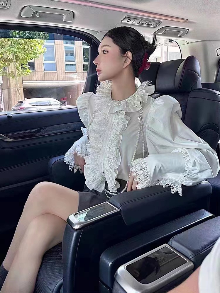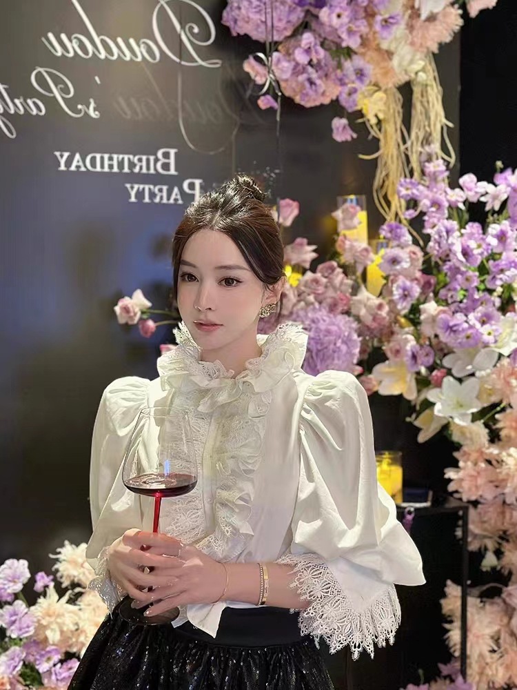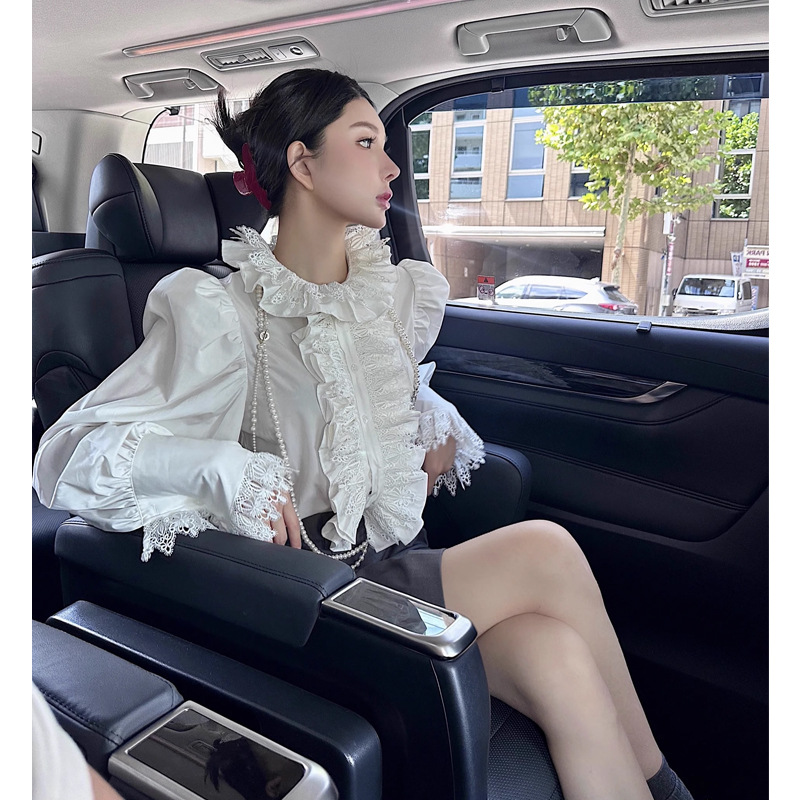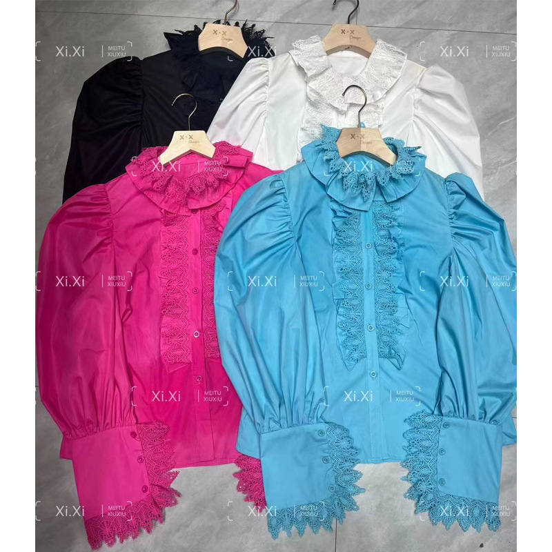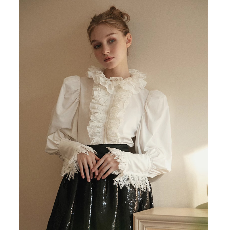국경 디자이너 프랑스 스타일 유행 원피스 셔츠 고급 복고풍 코트 스타일 레이스 칼라 셔츠스토어 가기