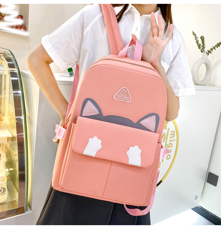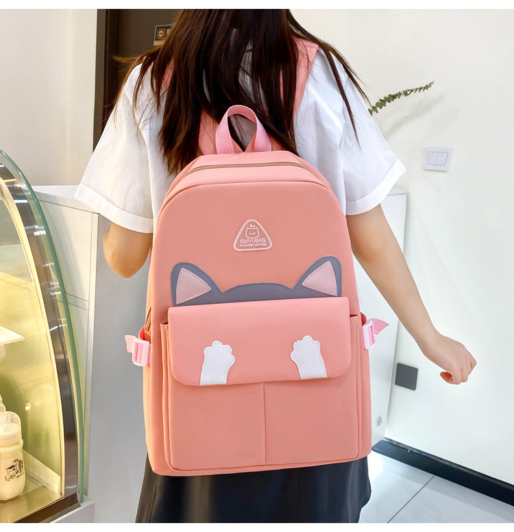 초등학생을위한 새로운 스타일의 Schoolbag 4 종 세트 여성 경량 귀여운 배낭 배낭 여학생 용 배낭스토어 가기