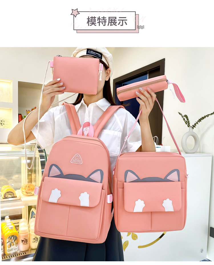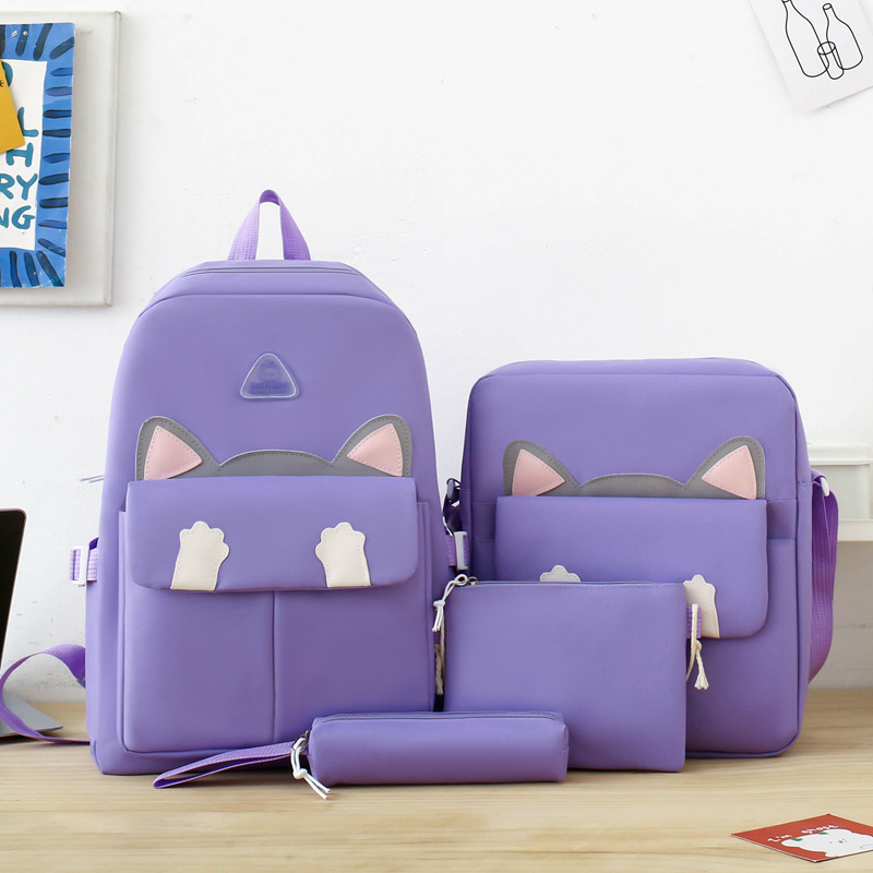 초등학생을위한 새로운 스타일의 Schoolbag 4 종 세트 여성 경량 귀여운 배낭 배낭 여학생 용 배낭